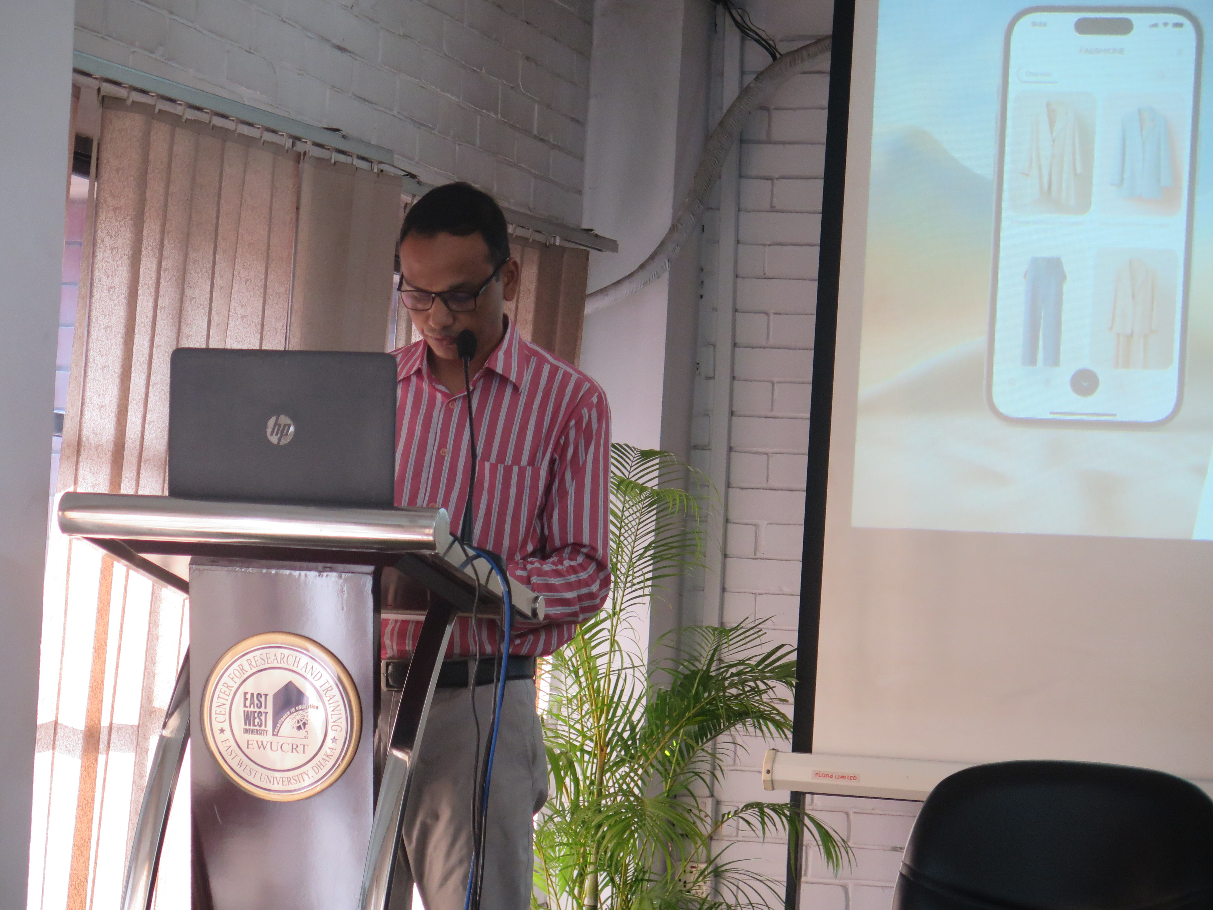 The East West University Center for Research and Training (EWUCRT) successfully organized a research seminar on October 19, 2025, at the EWUCRT Seminar Room in East West University (EWU). The seminar focused on the research proposal titled “Do the quality dimensions of m-fashion rental apps influence e-WOM intention of Gen Z? The roles of shame, perceived hygiene, and green altruism.”