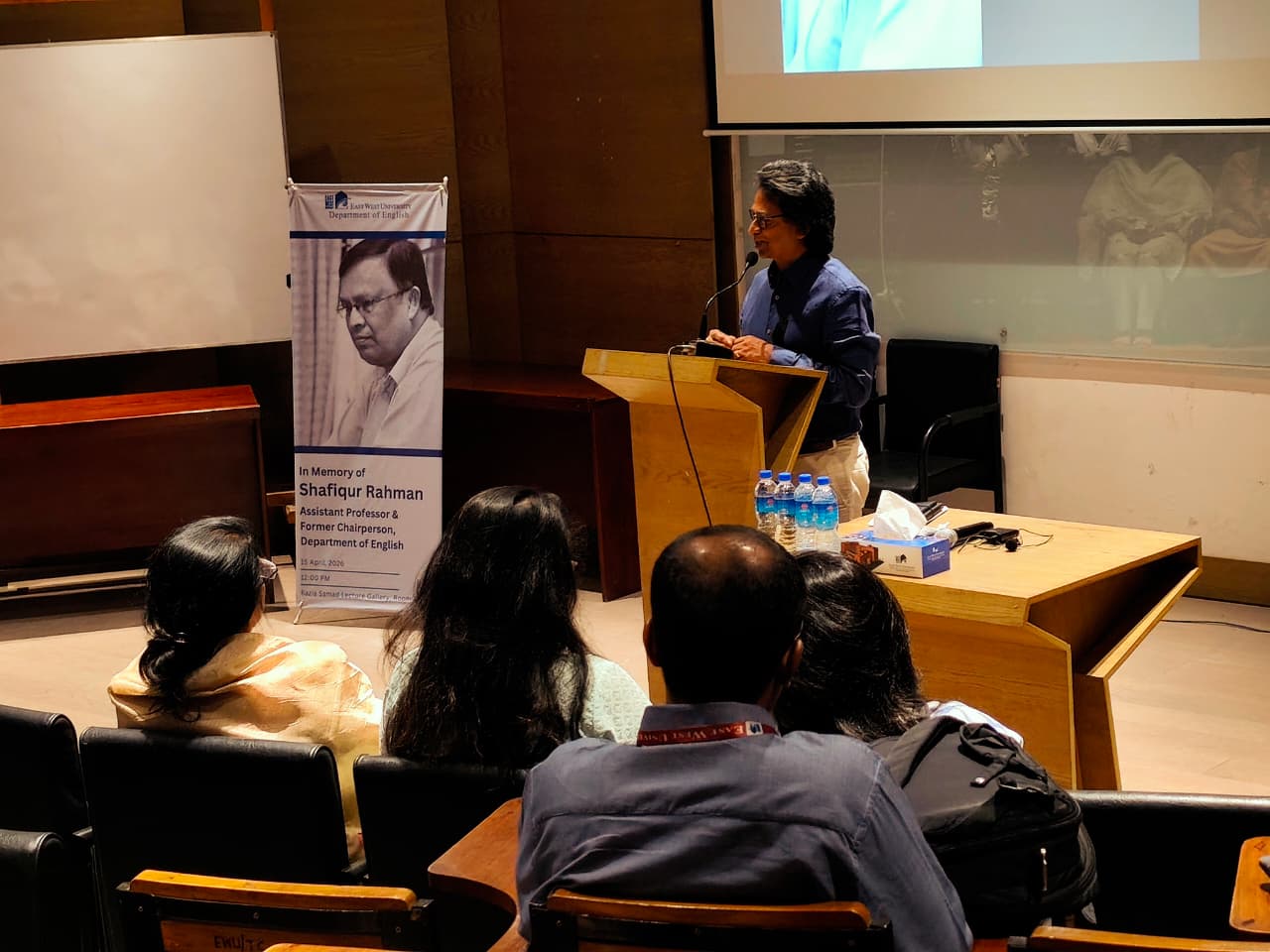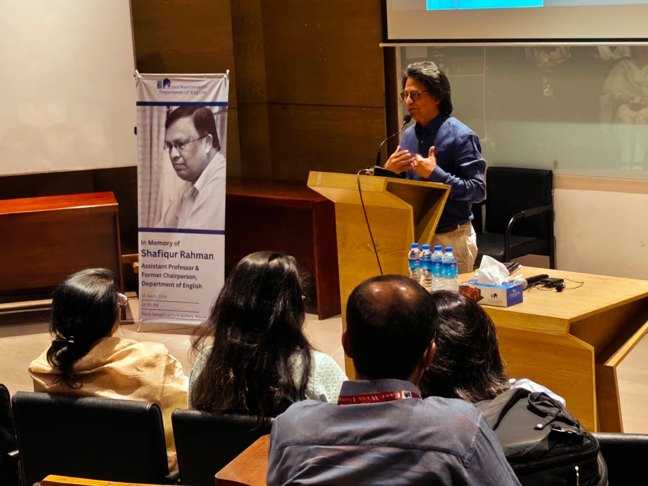 A memorial program was held in honor of the late Mr. Shafiqur Rahman, Assistant Professor and former Chairperson, Department of English, East West University, on Wednesday, April 15, 2026. The event took place from 12:00 PM to 1:30 PM at the Razia Samad Lecture Gallery, Room 242, at East West University. The program was hosted by Dr. Afia Arafat, Assistant Professor, Department of English. East West University.