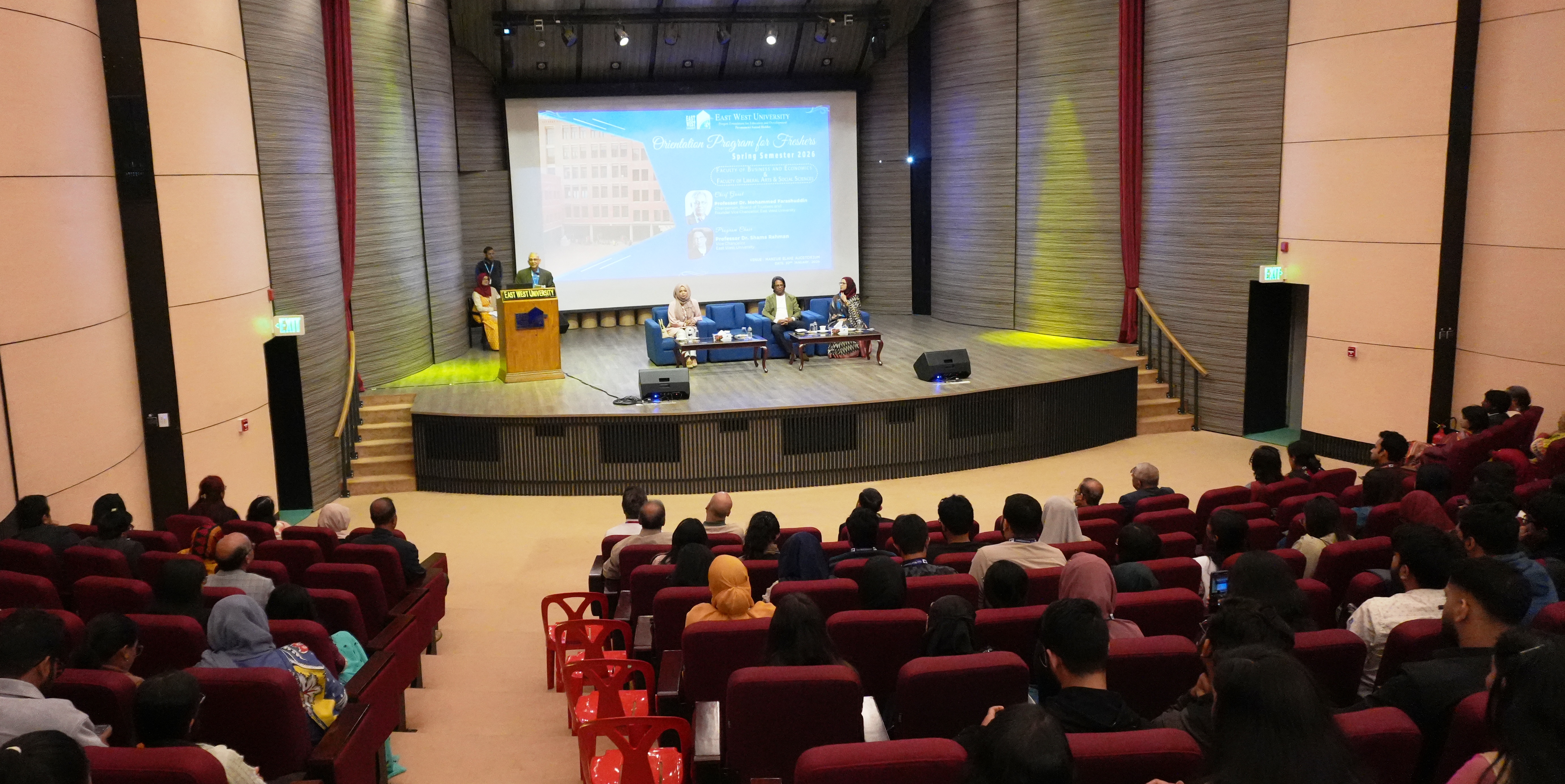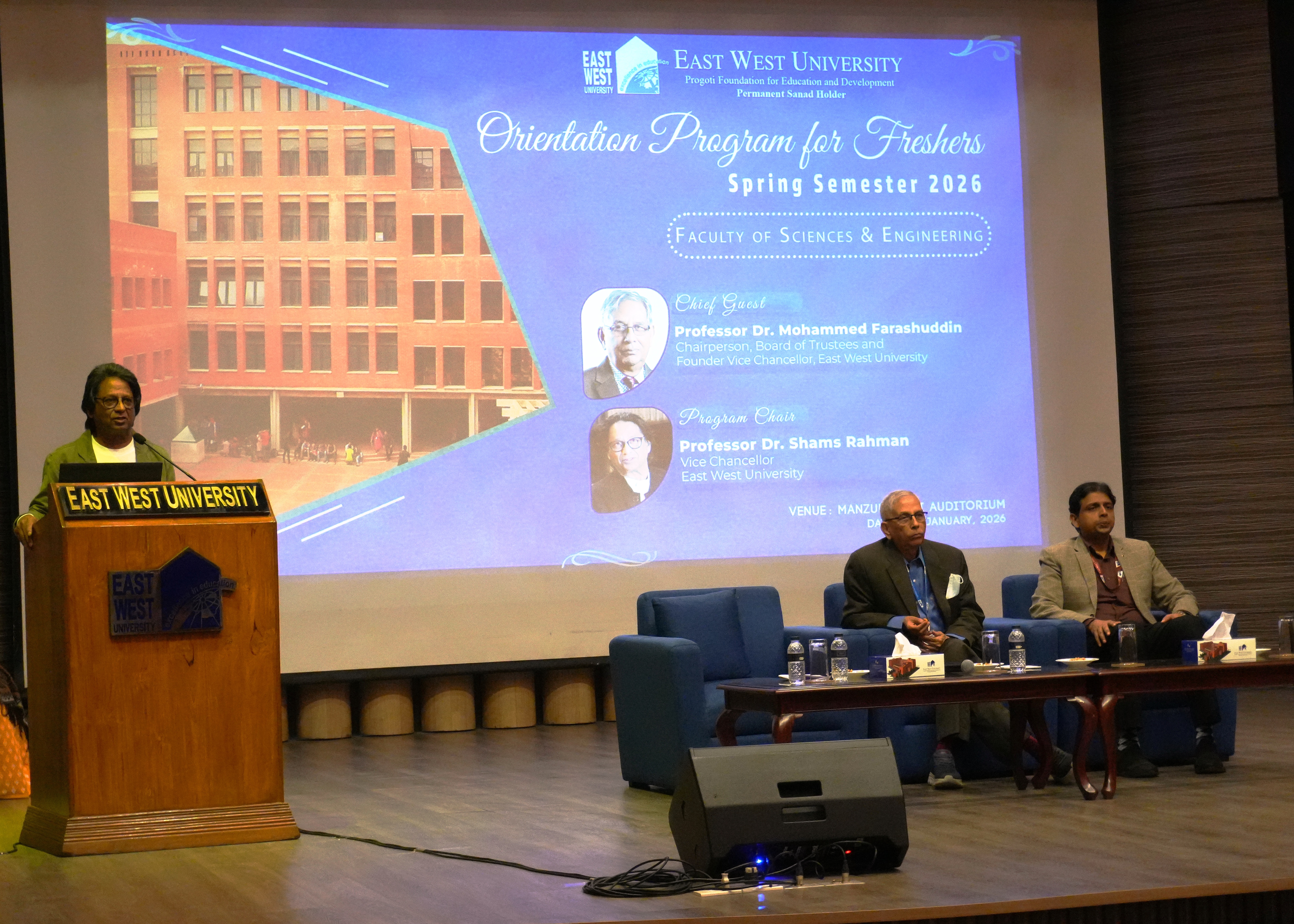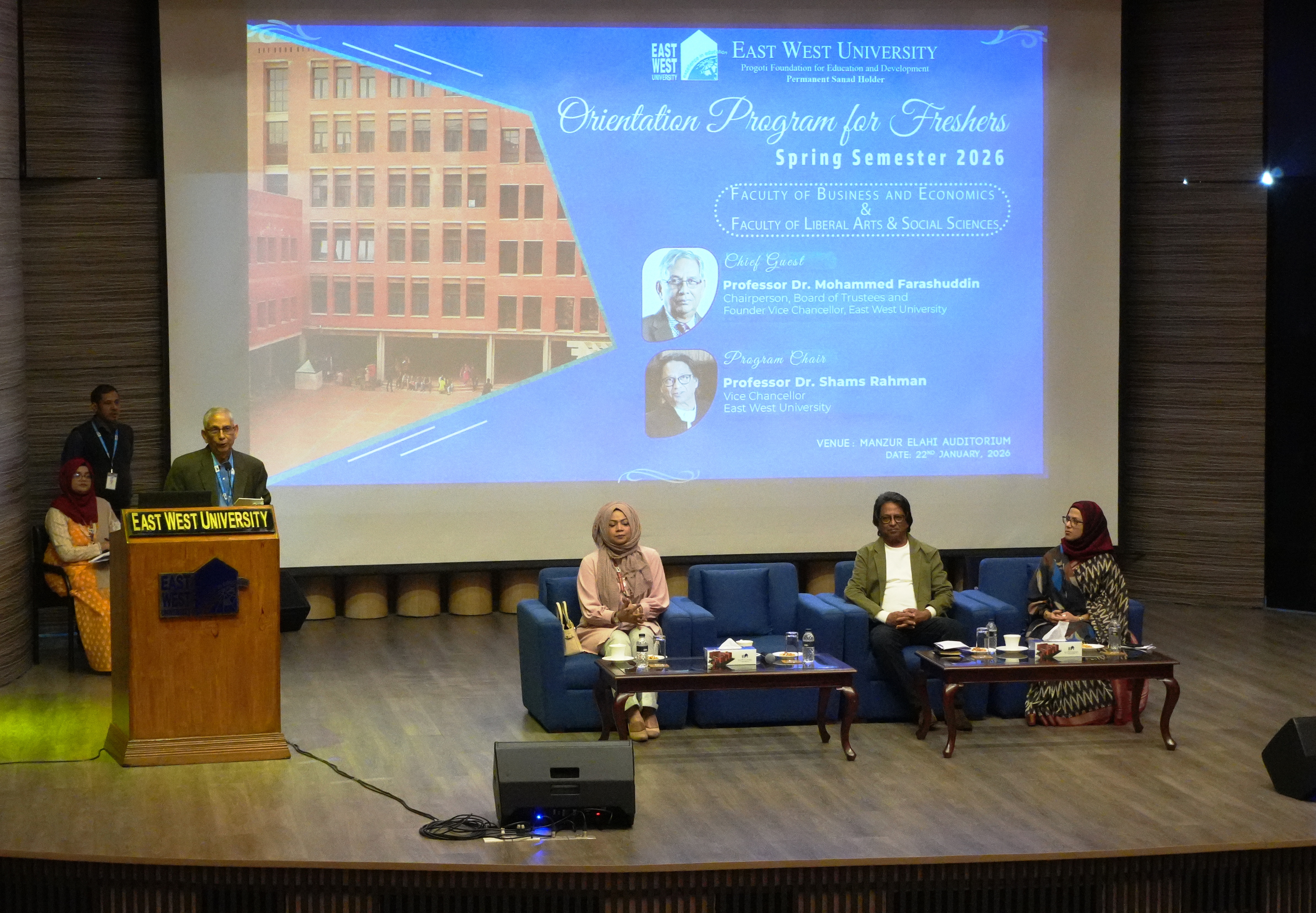 East West University (EWU) organized an orientation program for the newly admitted students of the Spring Semester 2026 at the Manzur Elahi Auditorium on 22 January 2026, at its campus, Aftabnagar, Dhaka. The event, designed to integrate freshers into the university’s academic culture, code of conduct, rules and regulations, facilities, etc.