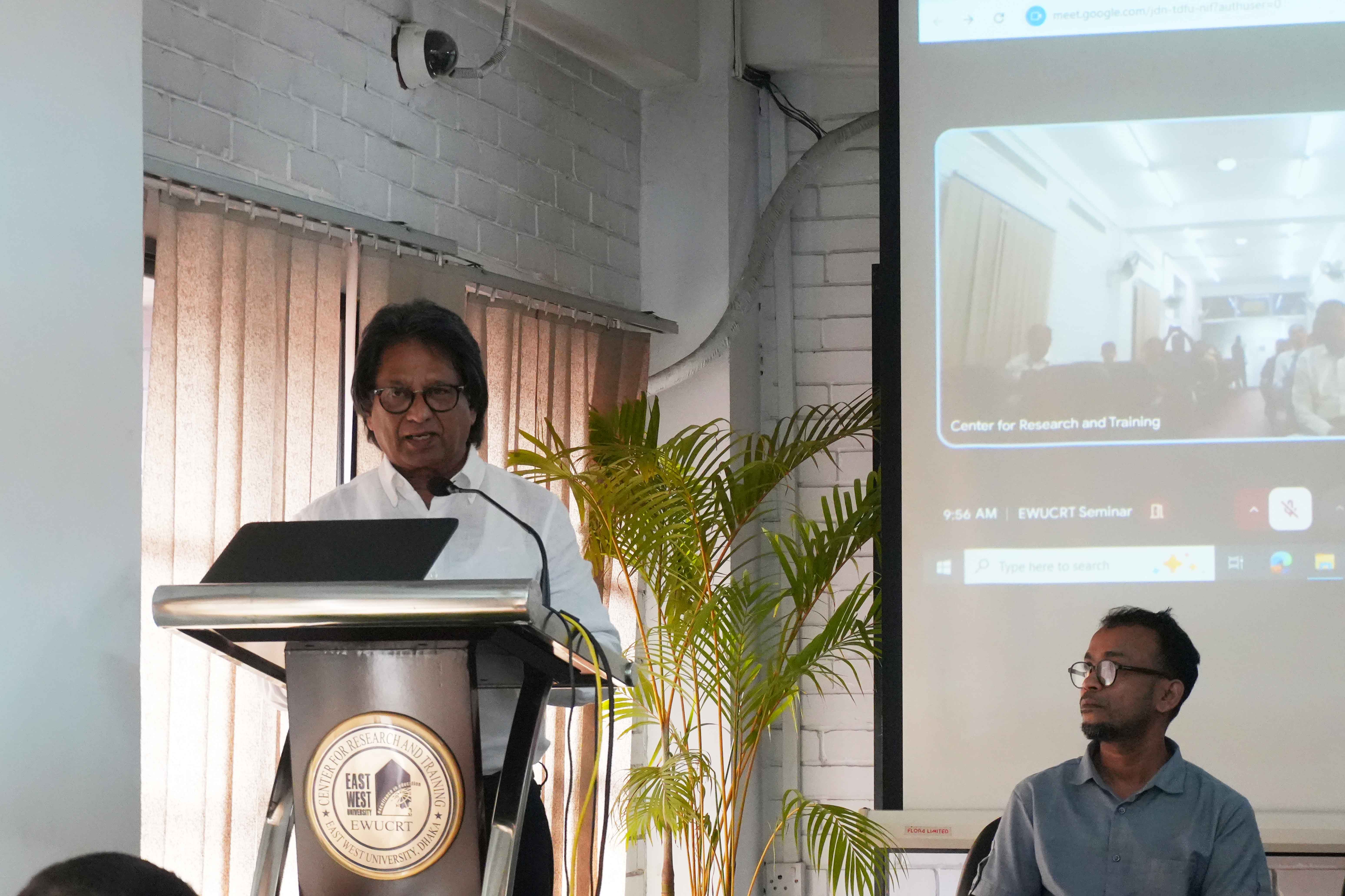 The session was chaired by Professor Dr. Shams Rahman, Vice Chancellor of East West University and Chairperson of EWUCRT, who lauded the cross-institutional partnership as a model for future technological advancement. The program was graced by Professor Dr. M. Ashik Mosaddik, Pro-Vice Chancellor of EWU, along with faculty members, EWUCRT officials, and enthusiastic students.