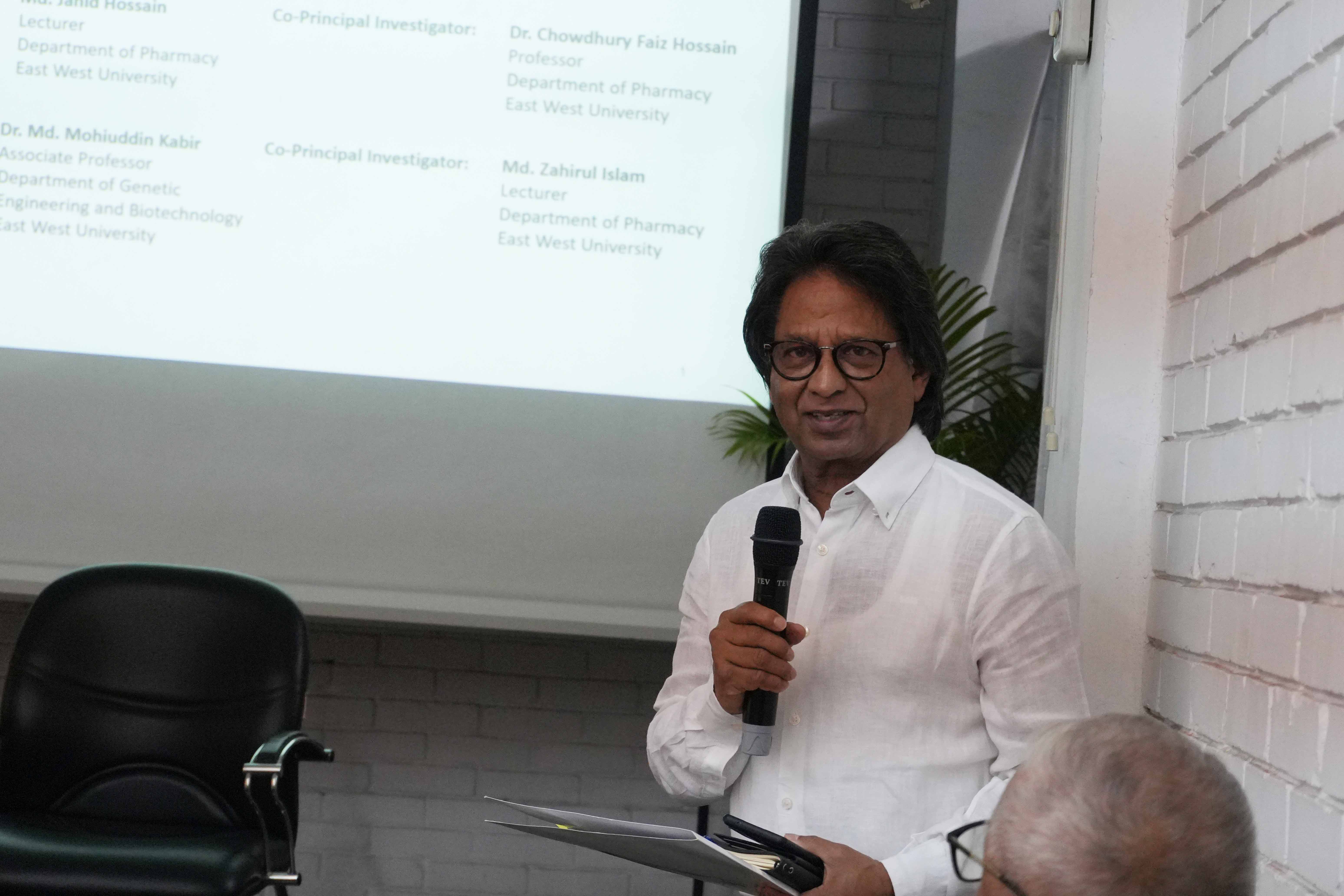 Following the presentation, Professor Dr. Shamsun Nahar Khan from the Department of Pharmacy, EWU, served as the formal discussant, offering expert commentary and contextualizing the research within the broader field of pharmaceutical science.