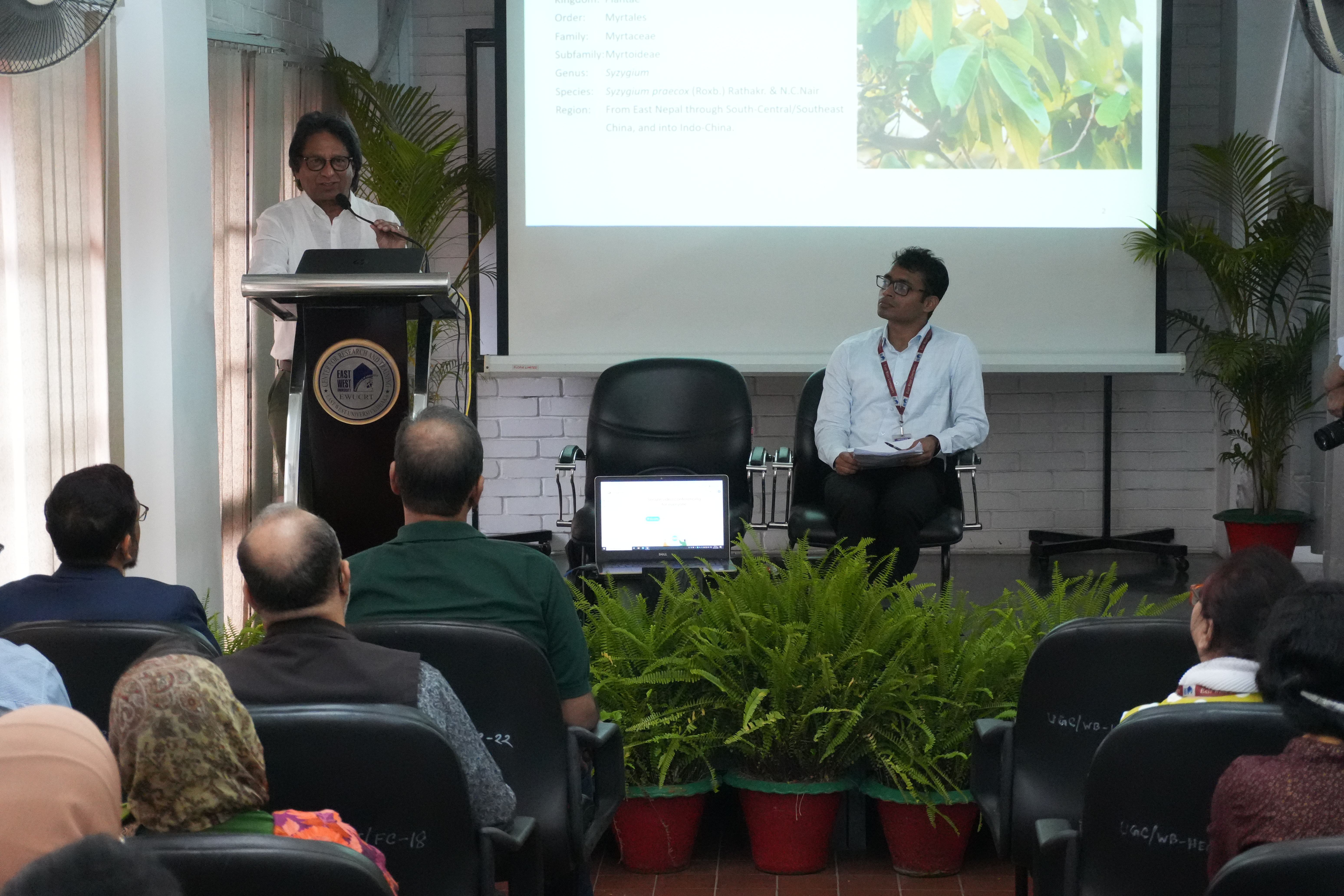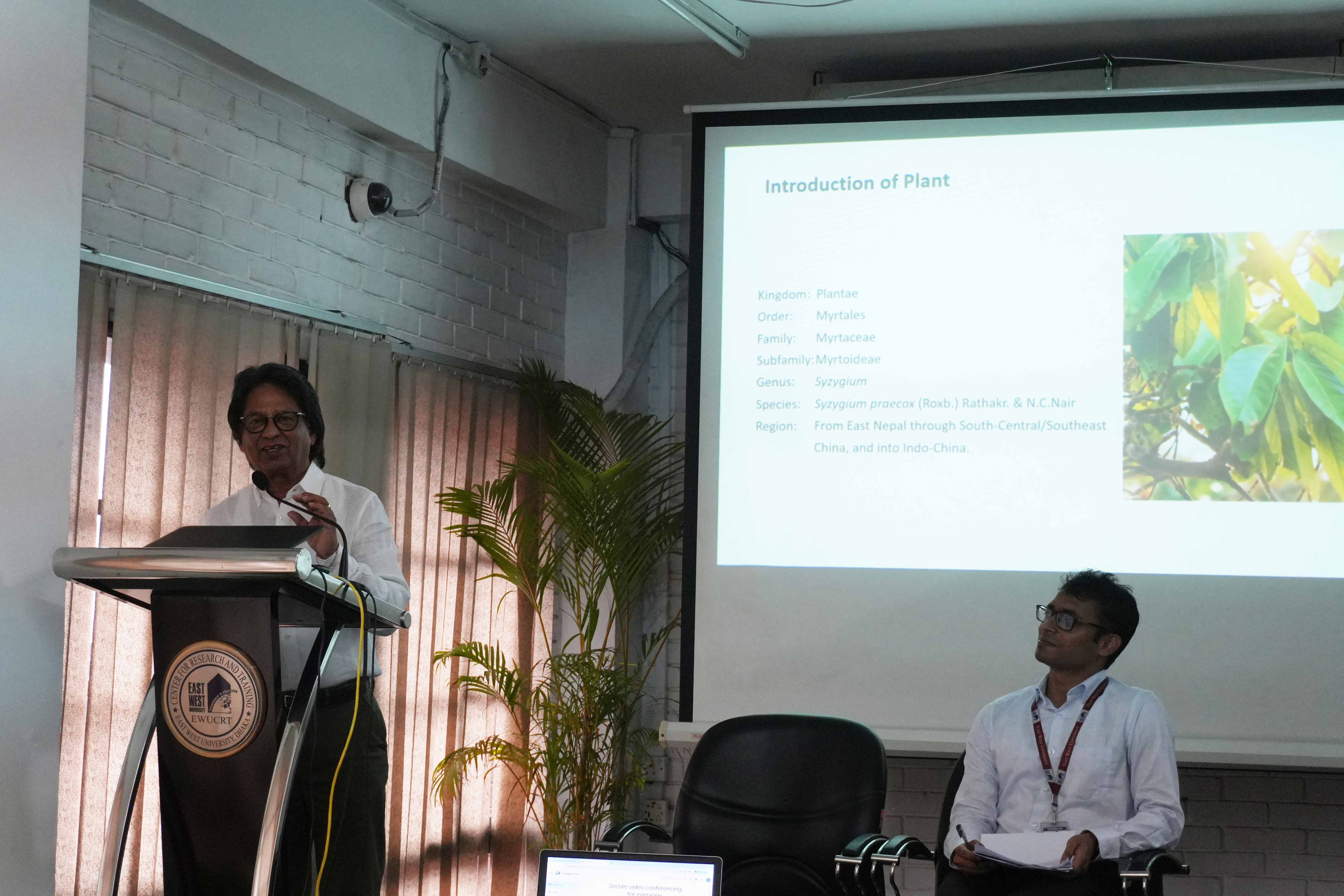 The East West University Center for Research and Training (EWUCRT) hosted a research seminar titled “Bioactivity-Guided Discovery and Characterization of Novel Antimicrobial Metabolites from Syzygium praecox” on April 9, 2026, at the EWUCRT Seminar Room. The seminar findings of a collaborative study conducted by a team of esteemed researchers from East West University (EWU): Md. Jahid Hossain, Lecturer, Department of Pharmacy, Md. Zahirul Islam, Lecturer, Department of Pharmacy, Dr. Md. Mohiuddin Kabir, Associate Professor, Department of Genetic Engineering and Biotechnology, and Professor Dr. Chowdhury Faiz Hossain, Department of Pharmacy.