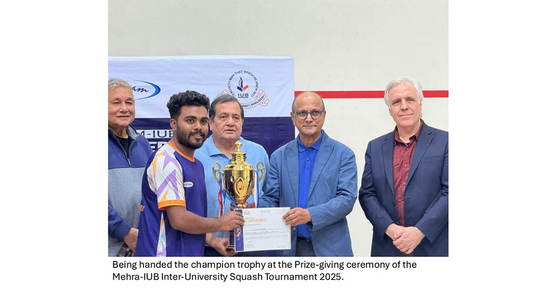 Walid’s most recent victory includes being crowned the Champion of the Mehra-IUB Inter-University Squash Tournament 2025. This adds to his consistent success in the Aqua Paints & Elite Steel Victory Day Tournament (University & Members Group), where he secured the Runners-up position in 2025 and was the Champion in 2024.