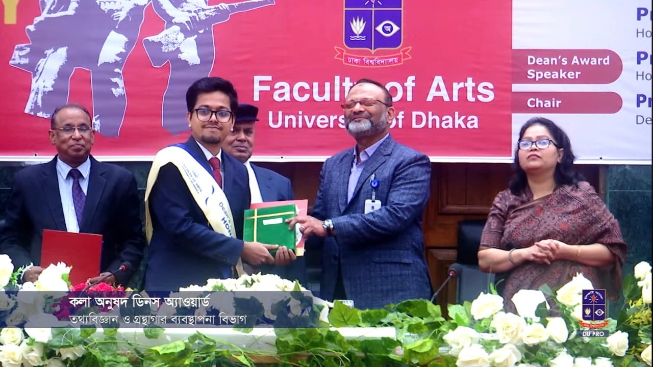 He received the awards for his outstanding performance in both his Bachelor of Arts (Dean’s Award of Academic Recognition) and Master of Arts (Dean’s Award of Honour) programs. The Dean’s Award Ceremony 2025 took place on 14 October 2025 at the Nabab Nawab Ali Chowdhury Senate Bhaban, University of Dhaka, and was presided over by Professor Dr. Mohammad Siddiqur Rahman Khan.