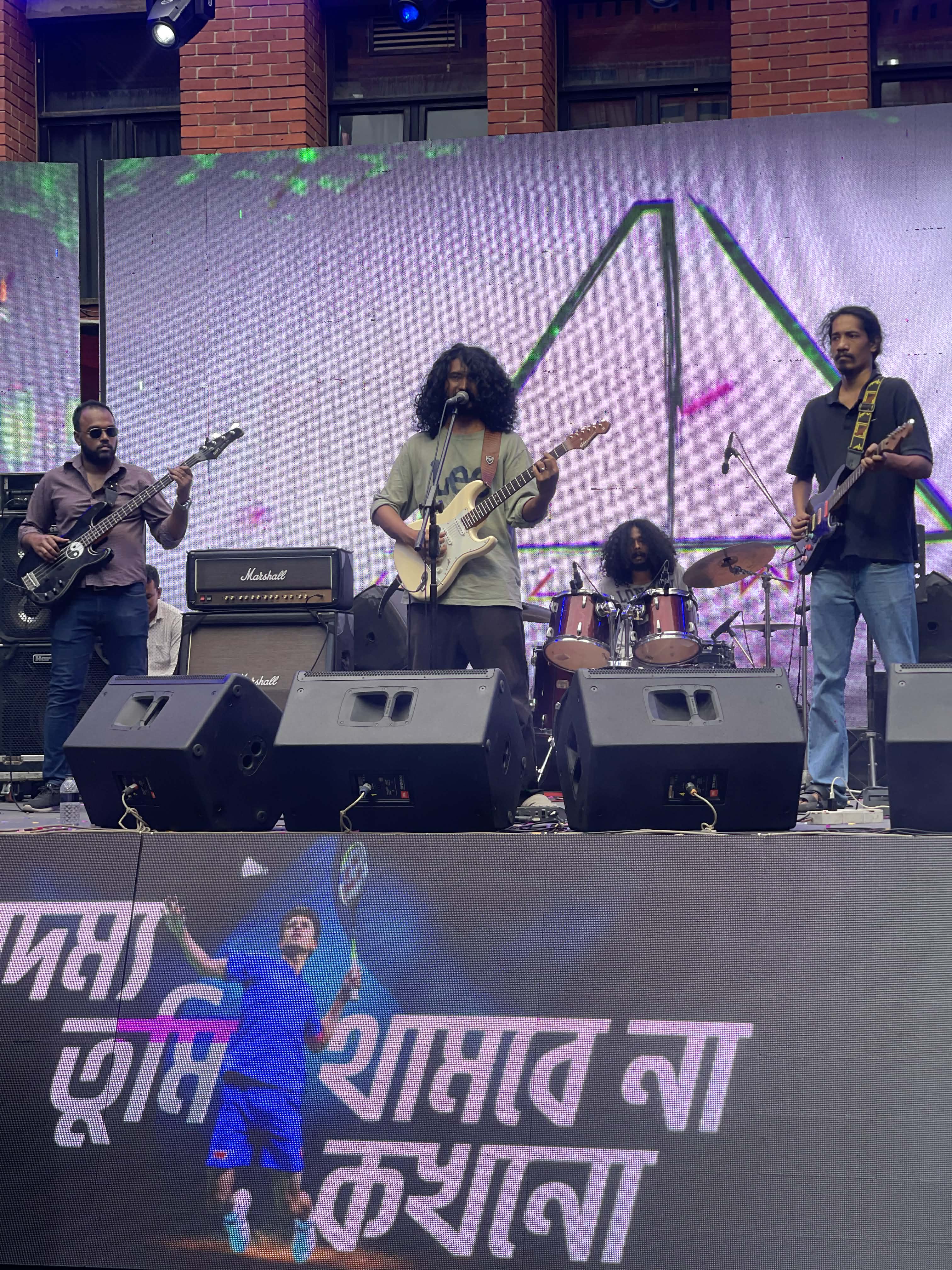 The unveiling of the trophy of the champions took place with the presence of the honorable guests and the executive panel of East West University Sports Club. A special attraction of the opening ceremony was the live concert featuring Highway, Ark, and Bagdhara. Their performances brought high energy to the stage and engaged the audience throughout the evening. Students enjoyed the music, sang along, and created a lively and joyful environment. The concert added a strong cultural touch to the event and made the opening ceremony more exciting and memorable.