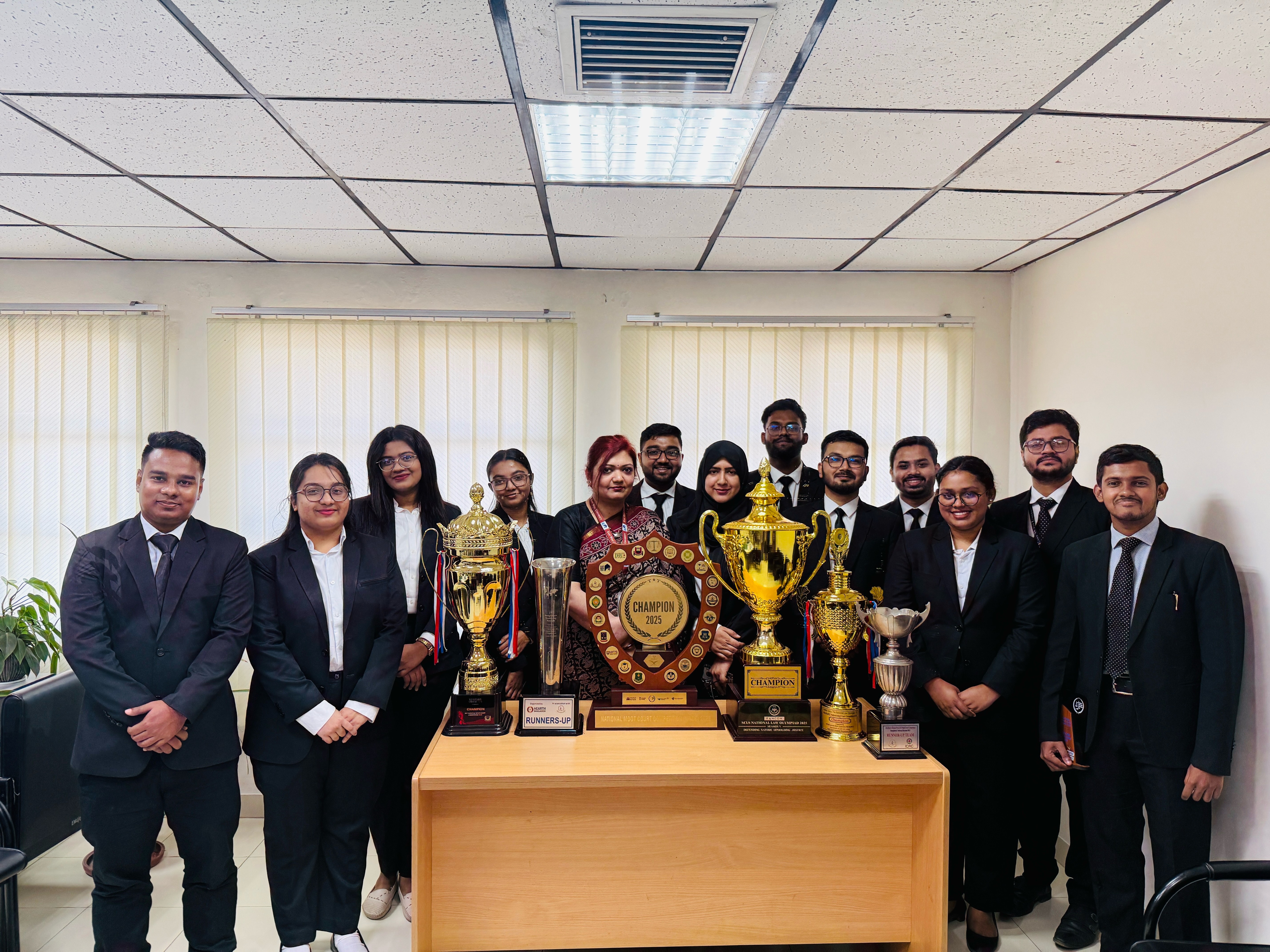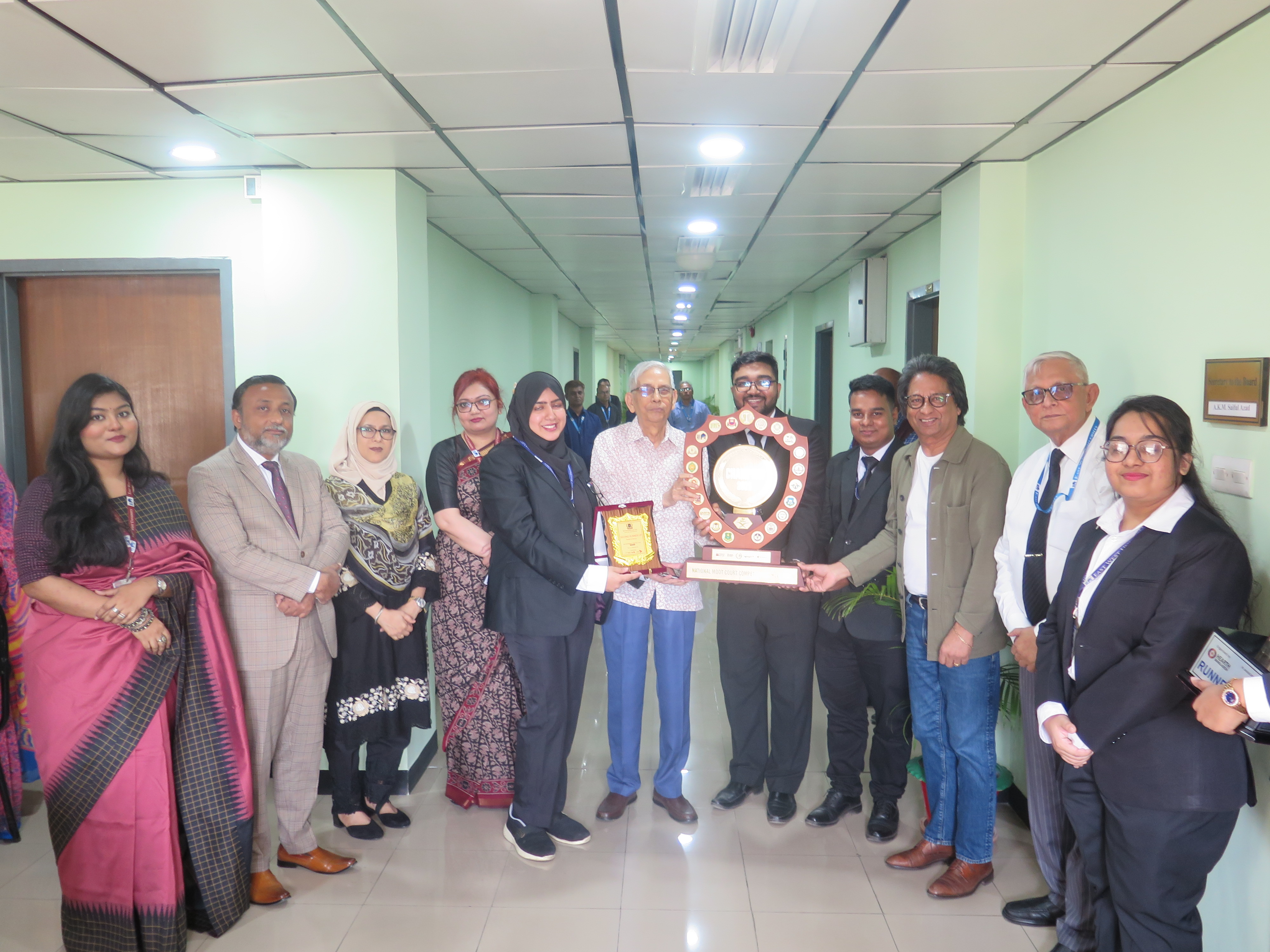 Dr. Nabaat Tasnima Mahbub, Chairperson & Associate Professor; Faculty Members and the brilliant Mooters of the Department of Law were specially invited to this prestigious gathering following a year marked by unparalleled success and academic excellence. The students of the Department of Law achieved a historic streak of victories in three consecutive Moot Court Competitions along with a National Law Olympiad Championship showing their teamwork and strong critical thinking, communication skills, and legal understanding. Apart from the team wins, several students received individual recognition for their strong legal reasoning, research abilities, and advocacy skills, such as the ‘Best Petitioner’s Award’, ‘Rebellious Spirit Award’, ‘Verdict on Motion Award’, ‘Best Oralist Awards’, and the ‘Best Olympian Award’.