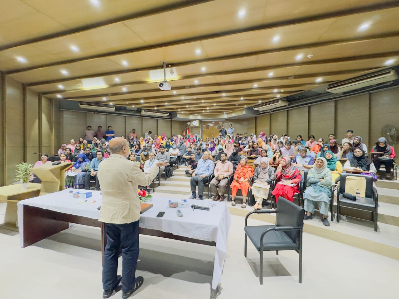 The keynote speaker, Professor Dr. Choudhury Mahmood Hasan, who pioneered scientific teaching of NMR spectroscopy in Bangladesh during his early academic career, captivated the audience with his lucid explanation of the fundamental principles of NMR within a remarkably short time. His thought-provoking insights, combined with his philosophy on the connection between knowledge and happiness, deeply encouraged both students and faculty alike.