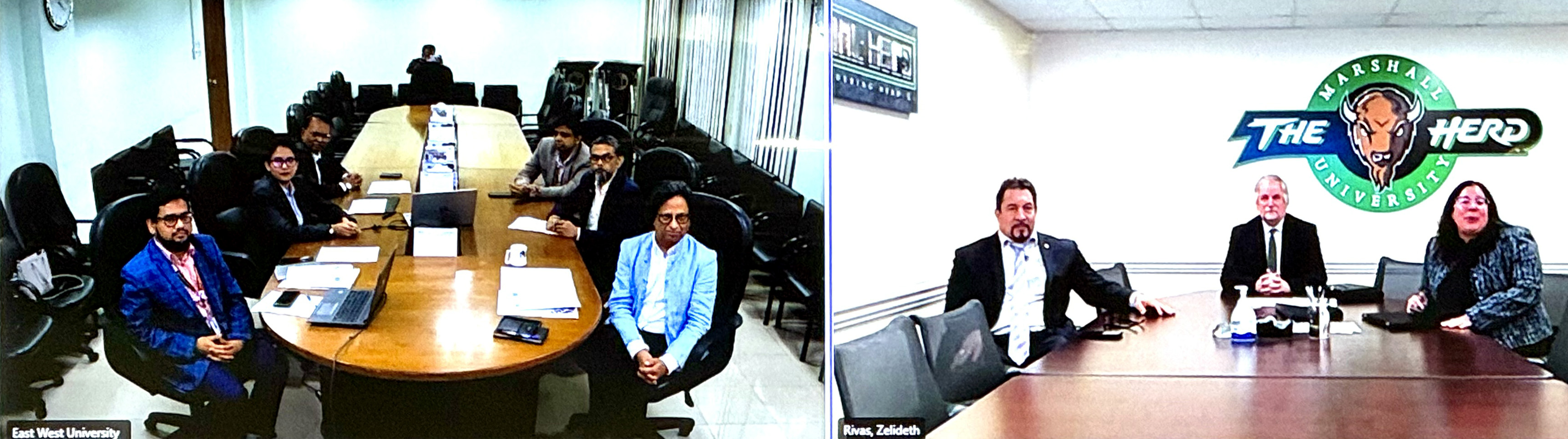 The MoU was formally signed during a virtual ceremony held on February 9, 2026. Representing East West University were Professor Dr. Shams Rahman, Vice-Chancellor; Professor Dr. Mohammad Ashik Mosaddik, Pro Vice-Chancellor; and Professor Dr. Ahmed Wasif Reza, Dean of the Faculty of Sciences and Engineering. Faculty members from EWU’s Department of Pharmacy were also present, including Professor Dr. Md. Amirul Islam, Chairperson; Professor Dr. Chowdhury Faiz Hossain; and Dr. Rejina Afrin, Associate Professor and an alumna of the Marshall University School of Pharmacy (MUSOP). Marshall University was represented by Professor Dr. Robert Bookwalter, Interim Provost and Senior Vice President; Professor Dr. Eric R. Blough, Dean of the Marshall University School of Pharmacy; and Dr. Zelideth Maria Rivas, Assistant Provost for Global Education.