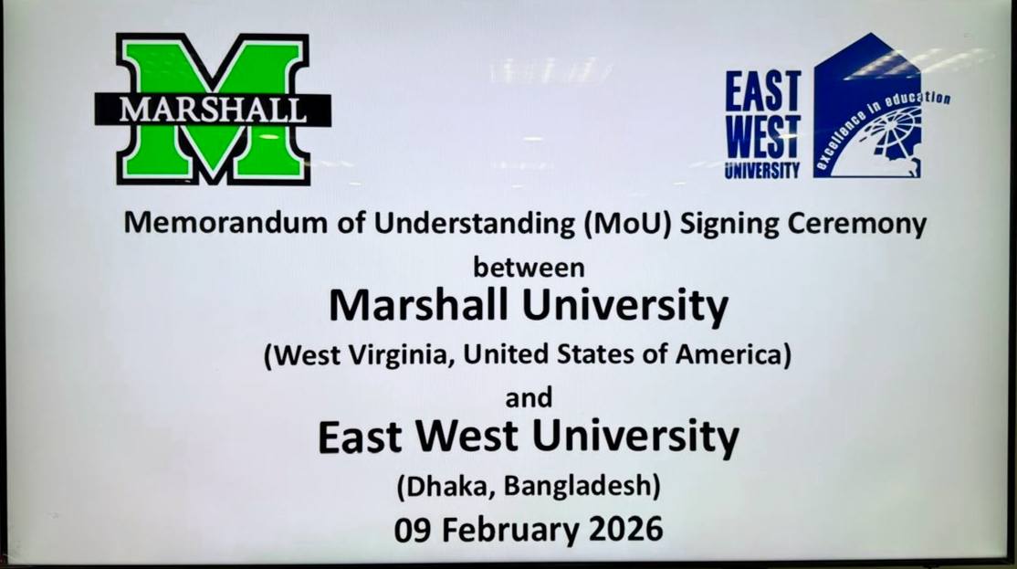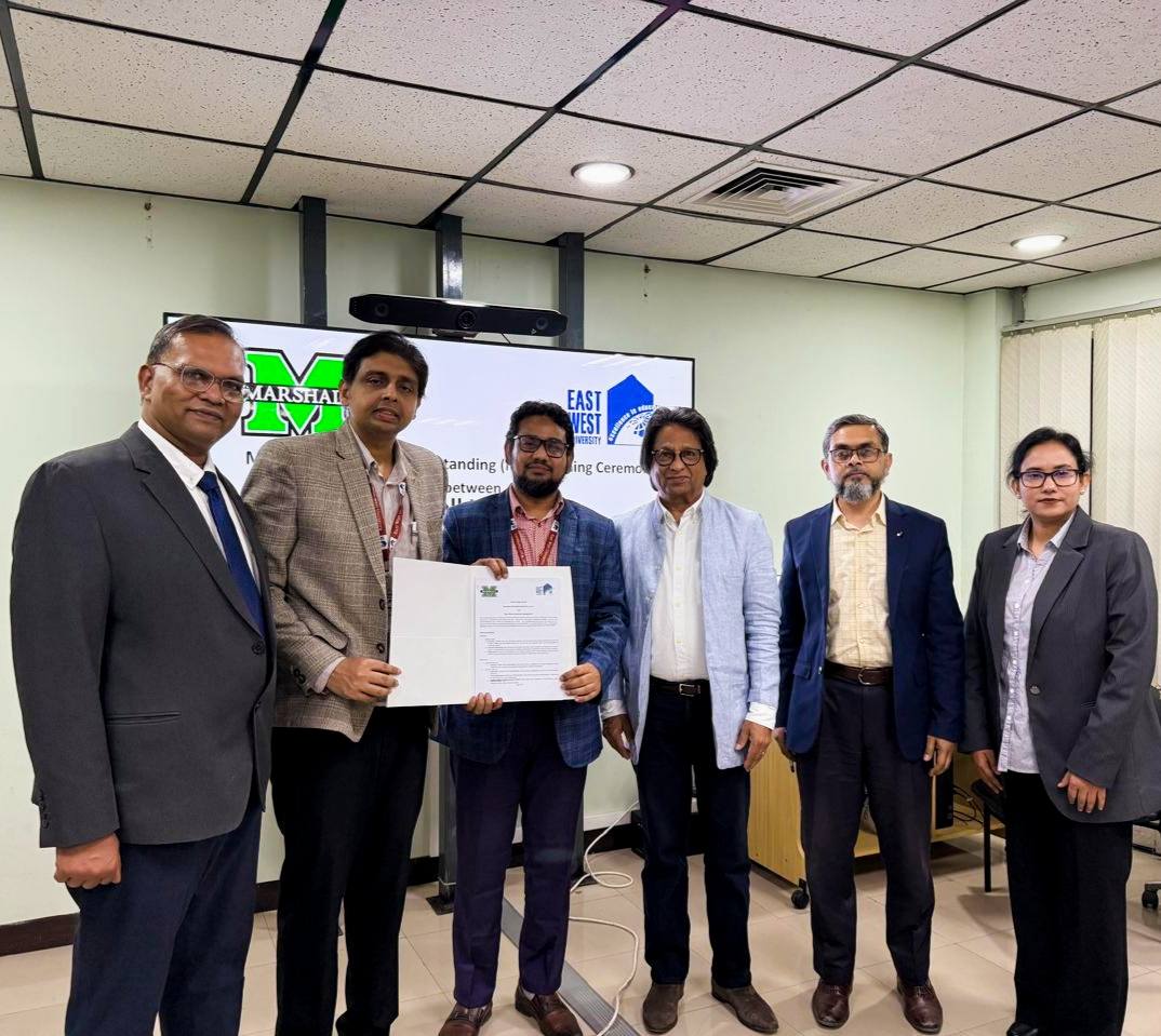 East West University (EWU), Bangladesh, and Marshall University (MU), USA, have signed a landmark Memorandum of Understanding (MoU) aimed at strengthening global academic collaboration in education, research, innovation, and capacity building. The agreement marks a significant milestone in EWU’s internationalization efforts, creating wide-ranging opportunities for students and faculty members across all faculties and academic disciplines.