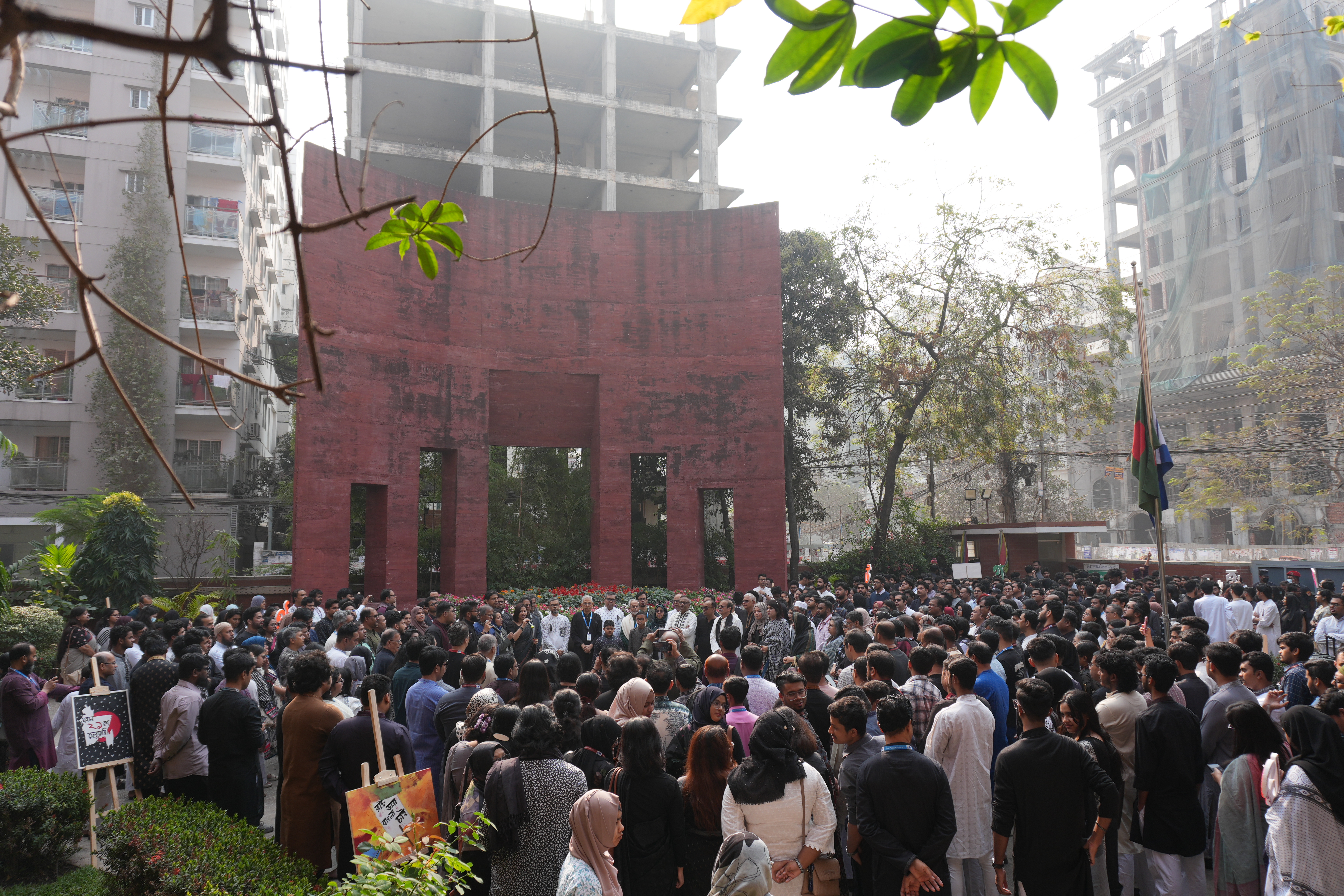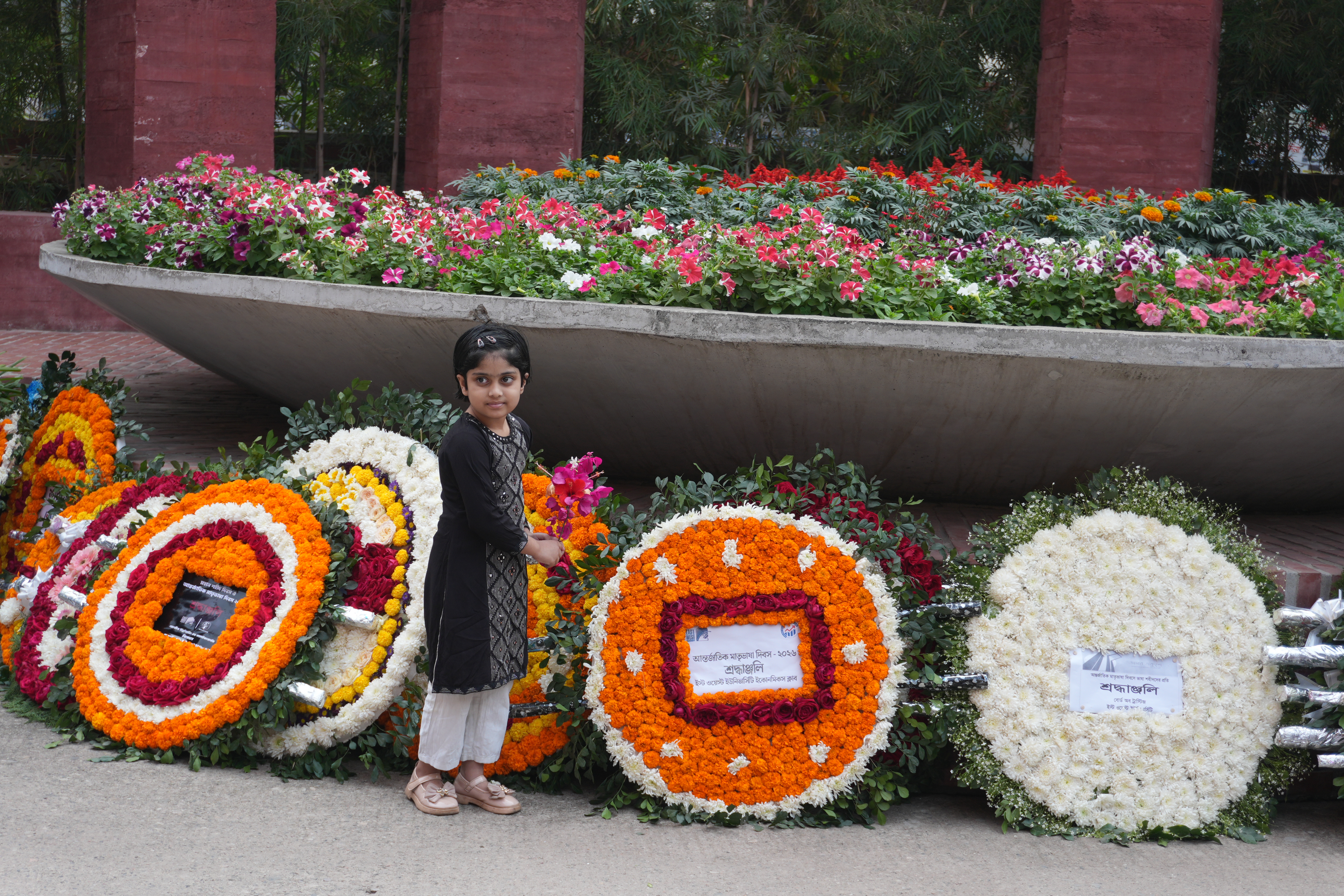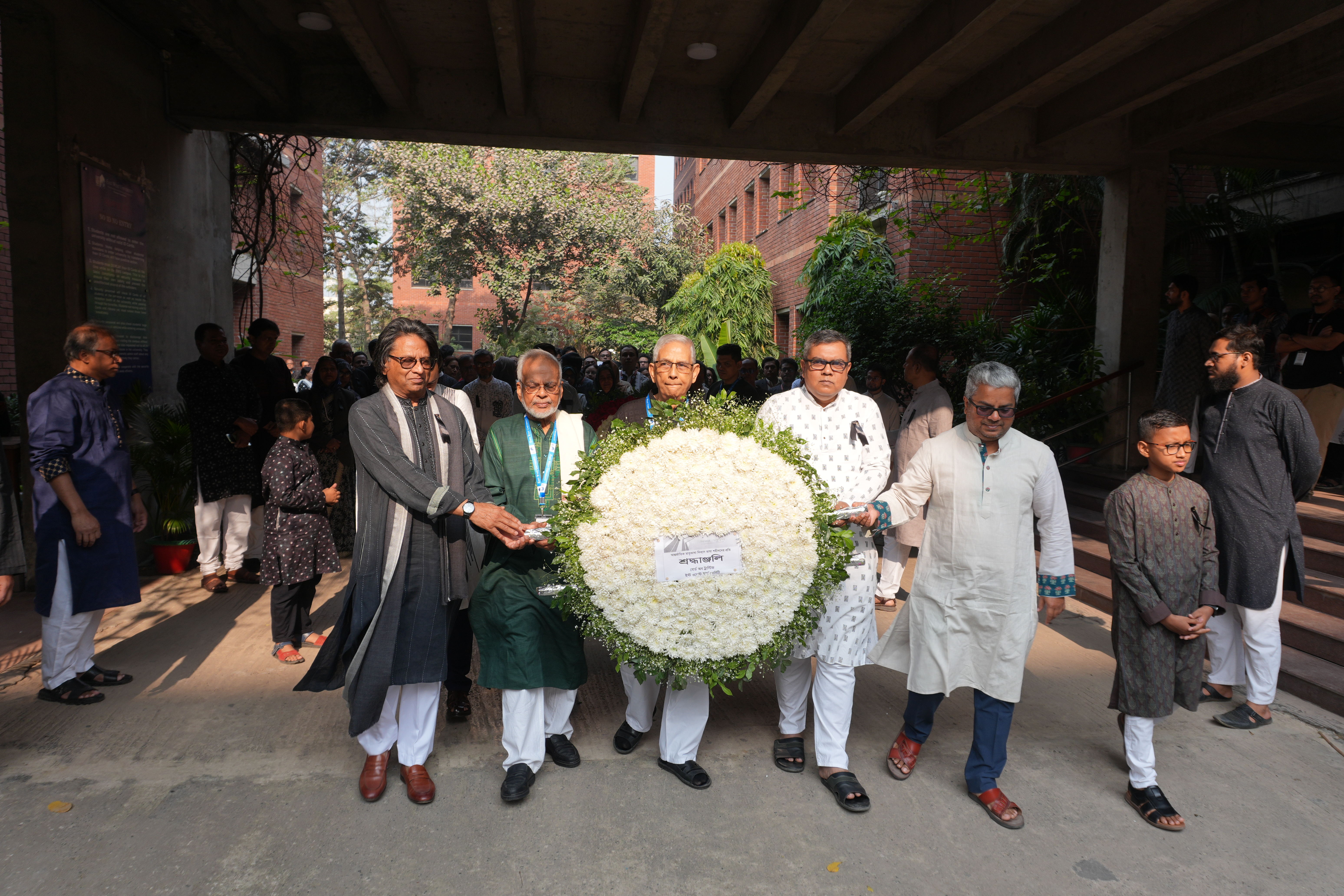 The commemoration began in the early hours of the 21st February 2026 morning with a "Provat Fery" rally through the Aftabnagar area. Participants, including members of the university administration, faculty, and students, marched in a disciplined procession to mark the occasion. Following the rally, a floral wreath-laying ceremony took place at the university’s own ‘Shaheed Minar’ on campus. Wreaths were placed in a gesture of deep respect by the Board of Trustees, University Administration, and various academic departments and student clubs.
