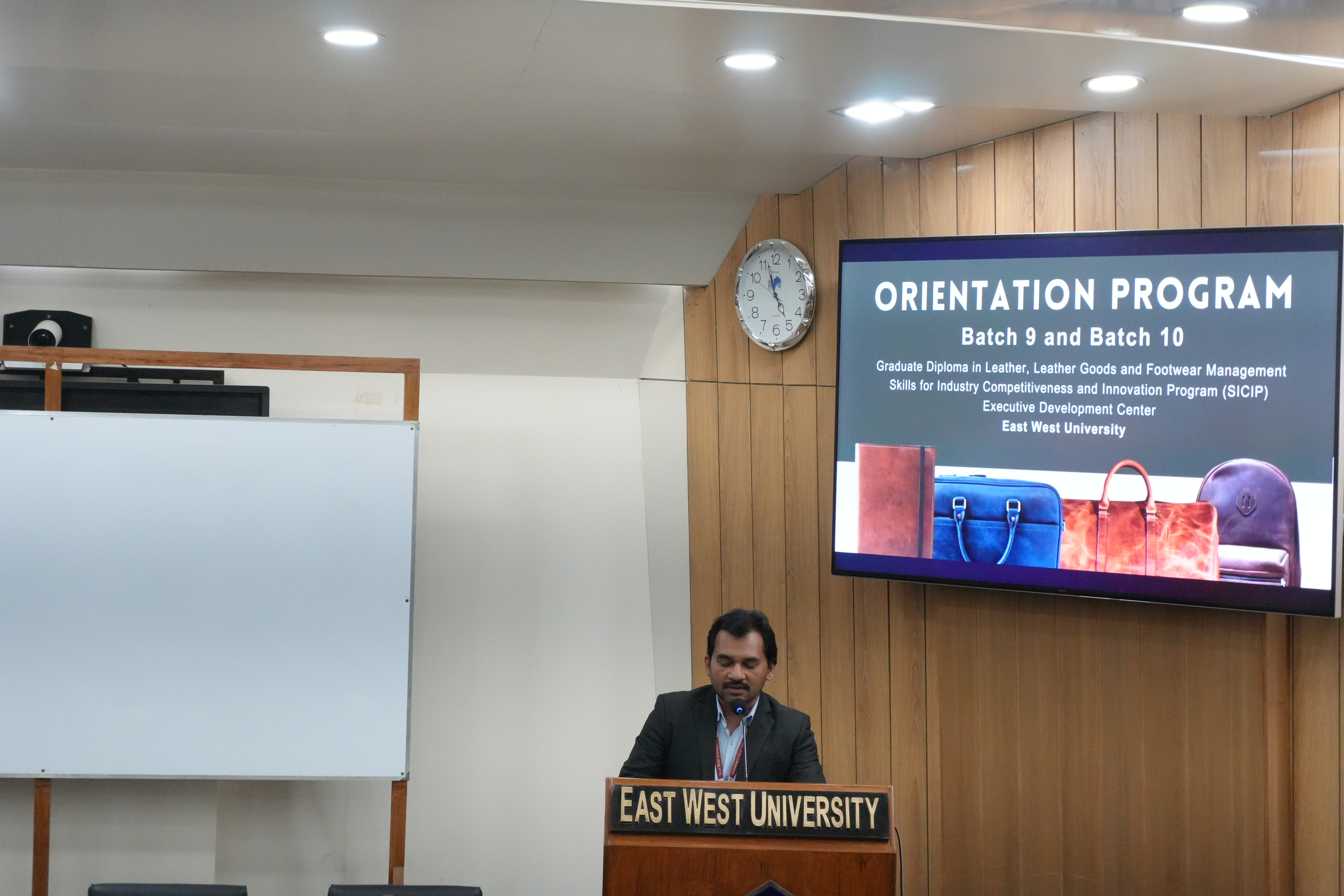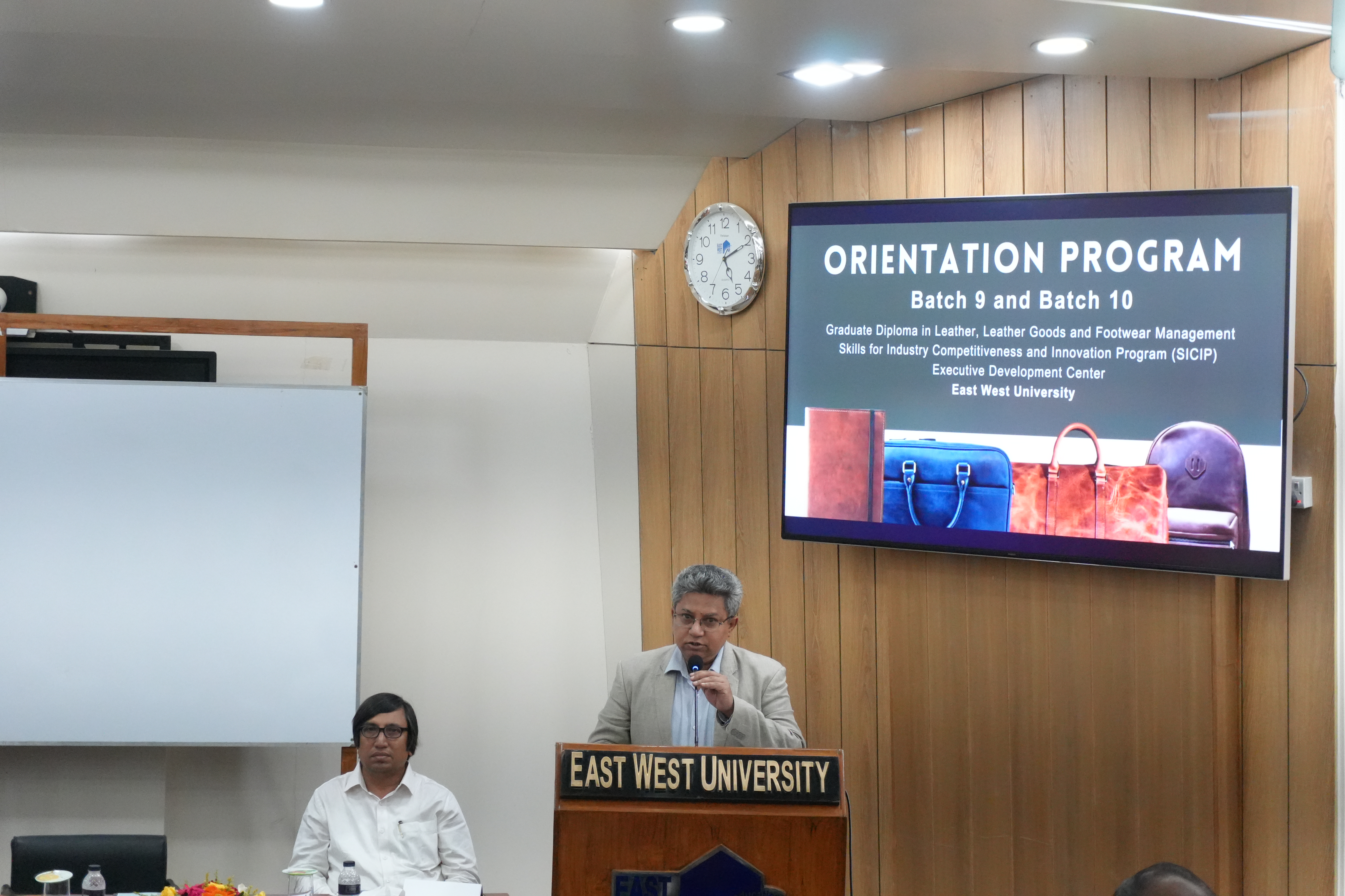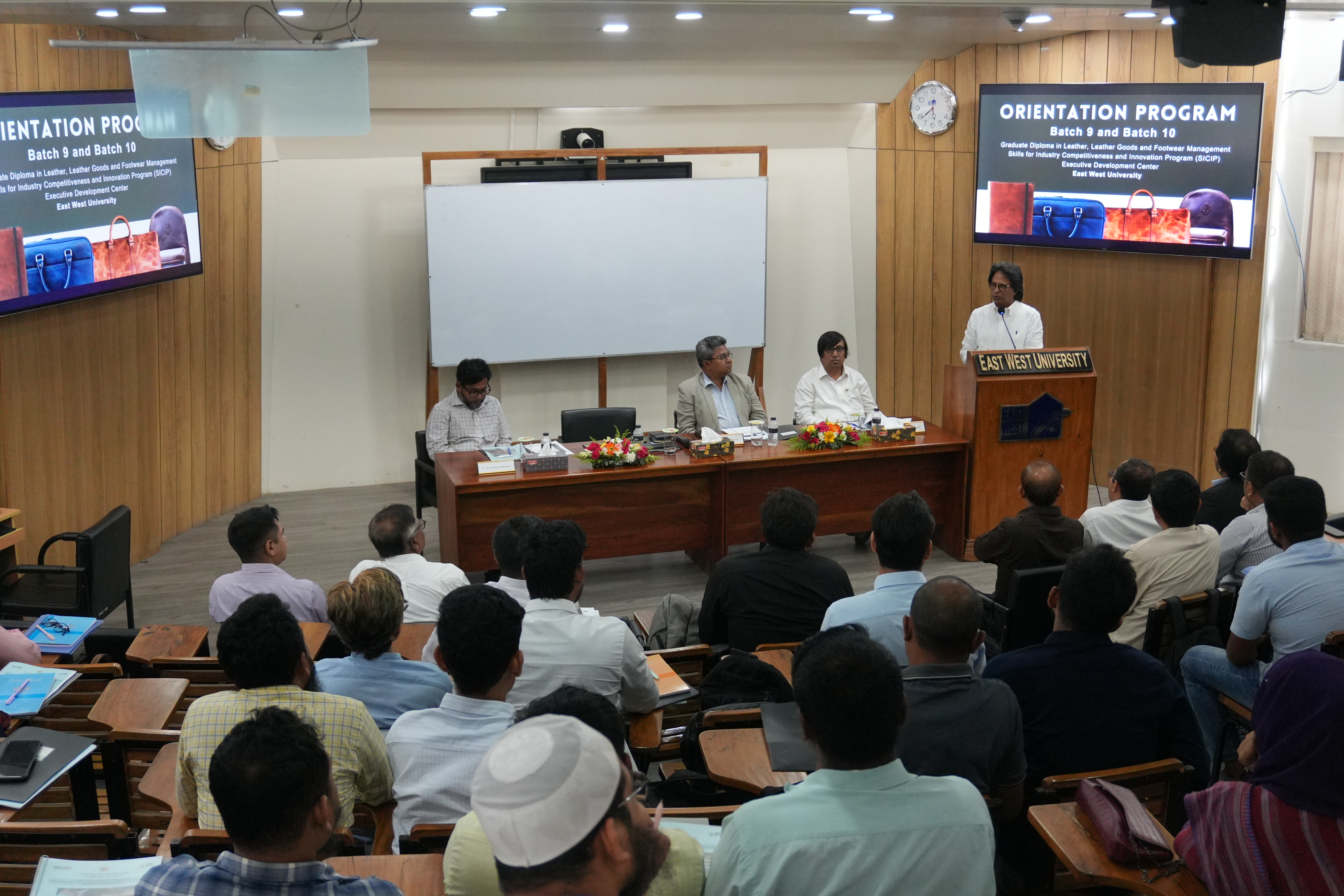 The Executive Development Center (EDC) of East West University (EWU), under the Skills for Industry Competitiveness and Innovation Program (SICIP), officially welcomed newcomer students of the 9th and 10th batches of its Graduate Diploma in Leather, Leather Goods, and Footwear Management. The orientation program was held on April 21, 2026, at the S. M. Nousher Ali Lecture Gallery at the university.