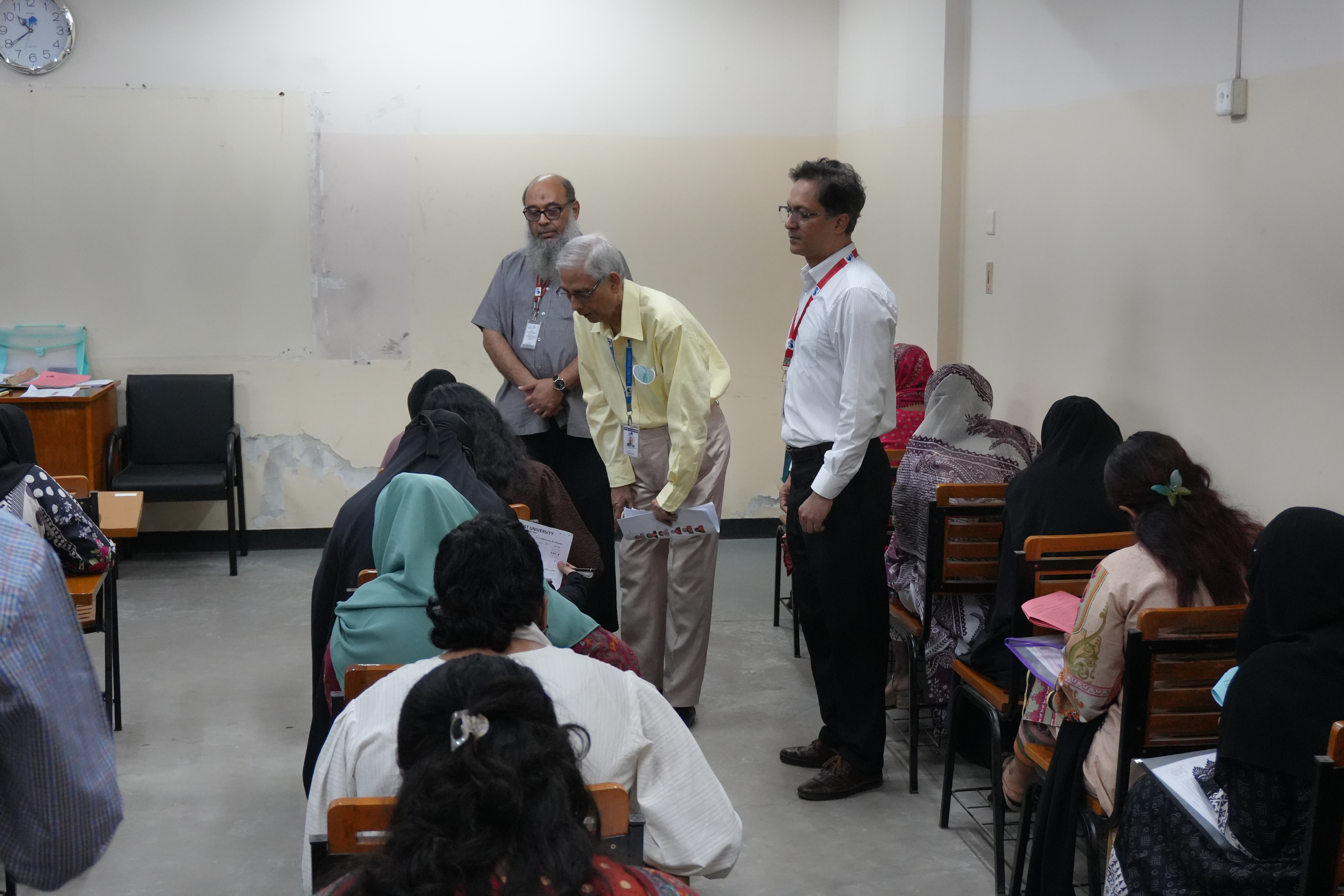 The university’s leadership was present at the campus entrance to personally welcome the aspiring students. Notable attendees included Professor Dr. Mohammed Farashuddin, Chairperson of the Board of Trustees; Professor Dr. Shams Rahman, Vice-Chancellor; Professor Dr. M. Ashik Mosaddik, Pro Vice-Chancellor; Air Commodore (retd) Ishfaq Ilahi Choudhury, Treasurer; and Dr. Anisur Rahman, Proctor. During the examination, the leadership team visited several halls to oversee the proceedings and expressed their high satisfaction with the disciplined and efficient execution of the admission process.