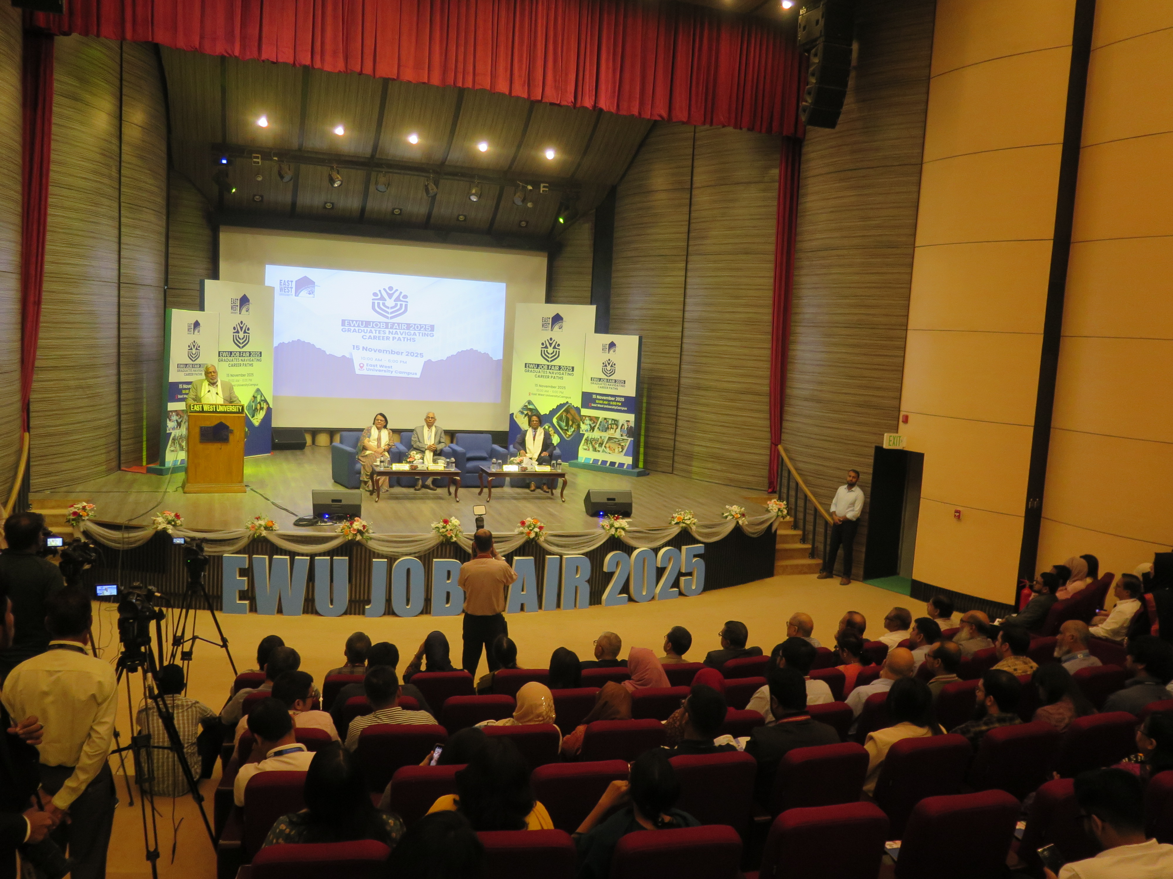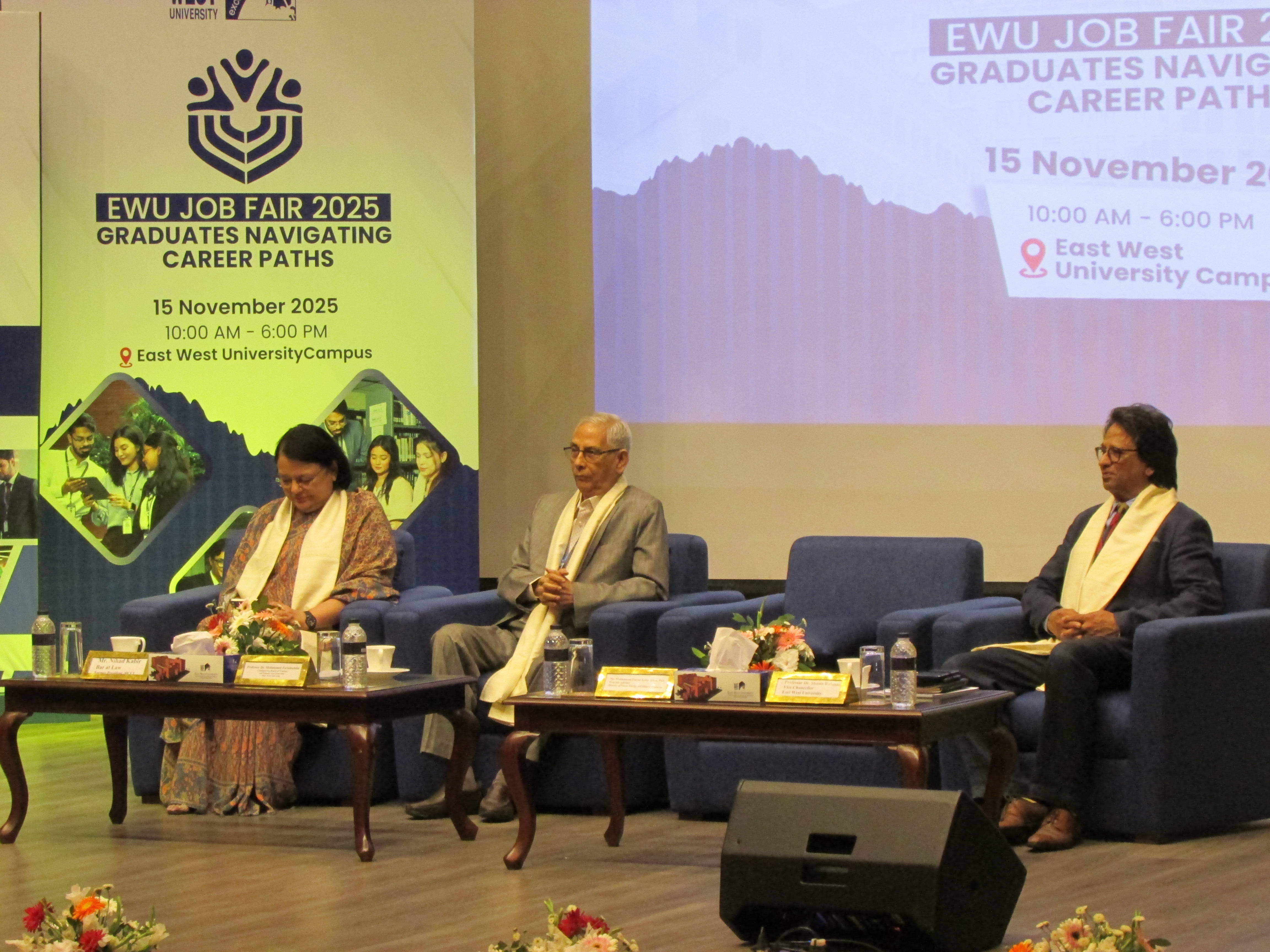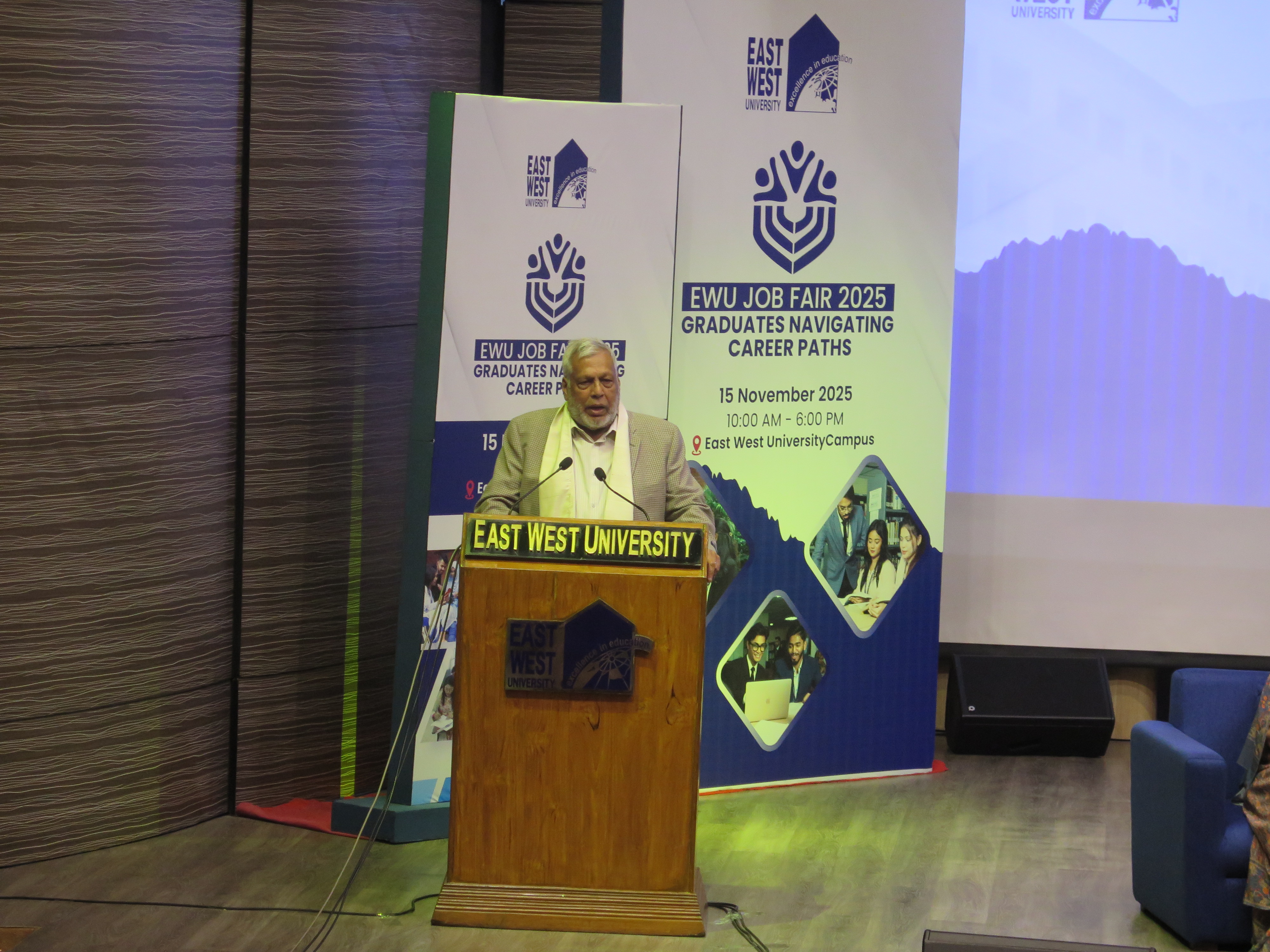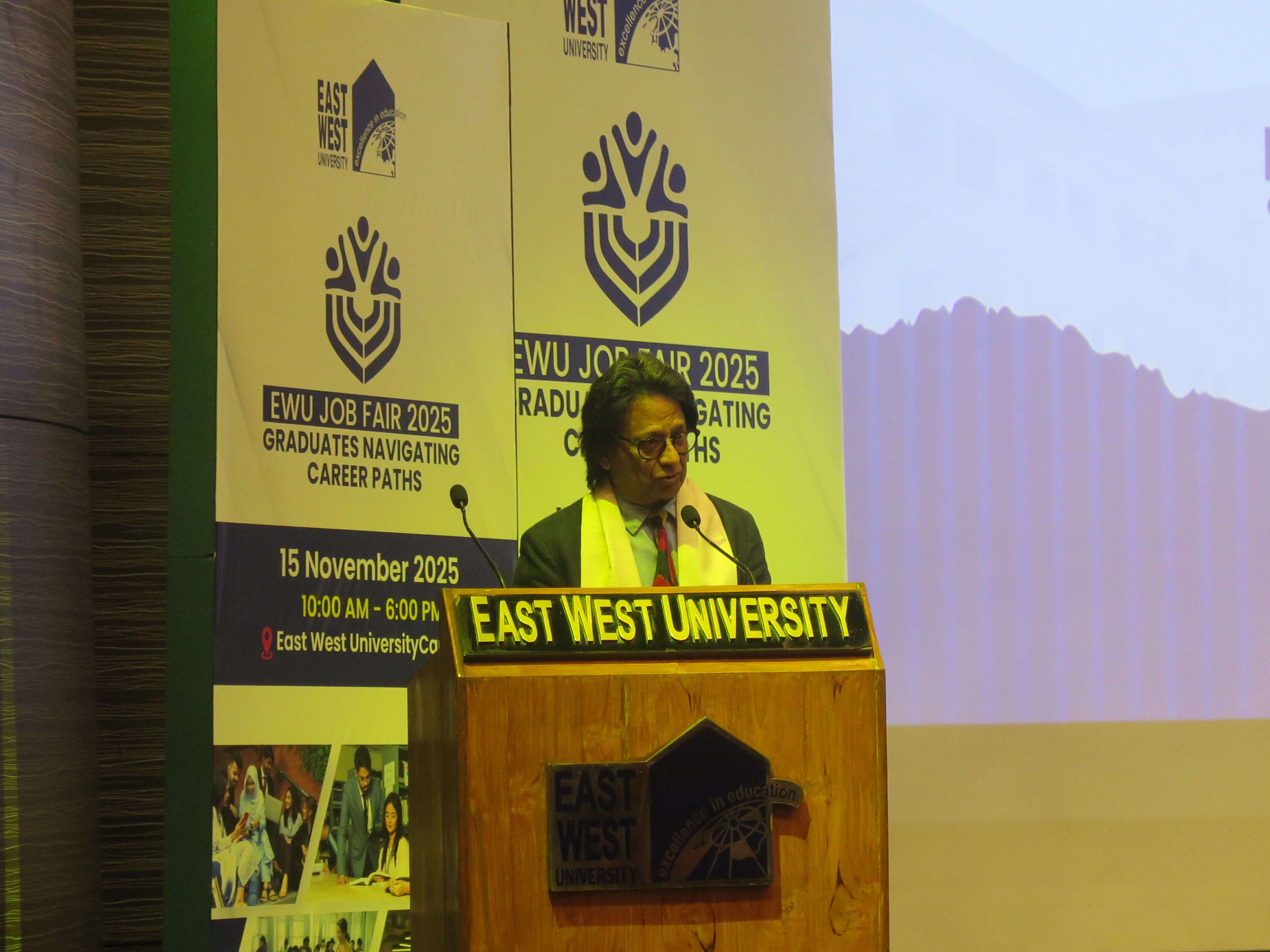 East West University (EWU) hosted a day-long ‘Job Fair’ on 15 November 2025, connecting thousands of aspiring graduates with 70 leading national and multinational organizations. The event was inaugurated by Muhammad Fouzul Kabir Khan, Adviser to the Ministry of Power, Energy, and Mineral Resources at the EWU campus in Aftabnagar, Dhaka. In his address, Mr. Khan called on the youths to enter politics, stressing the critical need for ethical leadership. "There is a need for honest people in the politics of Bangladesh. I urge honest individuals to build their careers in politics," said Mr. Khan. He also advised students to focus on innovation and entrepreneurship rather than solely pursuing job opportunities. Stating that global demand has shifted: "The demand for skillness is increasing than the degrees. What I can do is more important than the degree I have achieved." He called on young people to generate wealth through production and innovation rather than lobbying or pursuing undue advantage. Barrister Nihad Kabir, Former President of the Metropolitan Chamber of Commerce and Industries (MCCI), Dhaka, and Special Guest at the event, highlighted the fair’s value, calling it a "great opportunity" for students to choose their desired career paths and learn details about their preferred organizations, as well as the opportunity for the employers too.