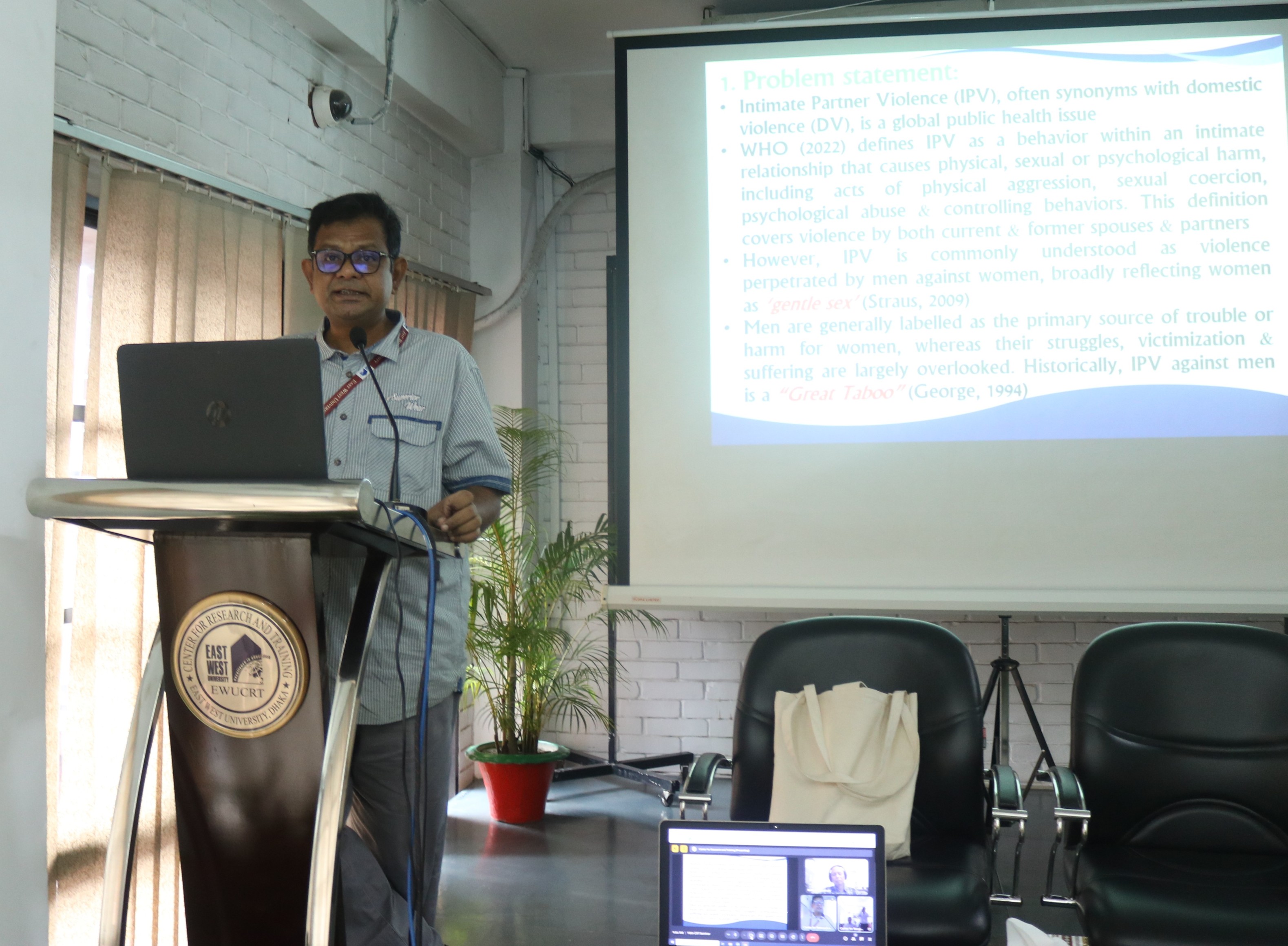 The East West University Center for Research and Training (EWUCRT) organized a research seminar focusing on a critical and often overlooked social issue: "Men’s Experiences of Female Perpetrated Intimate Partner Violence in Bangladesh." The seminar took place at the EWUCRT Seminar Room of East West University (EWU) on 30 October 2025.