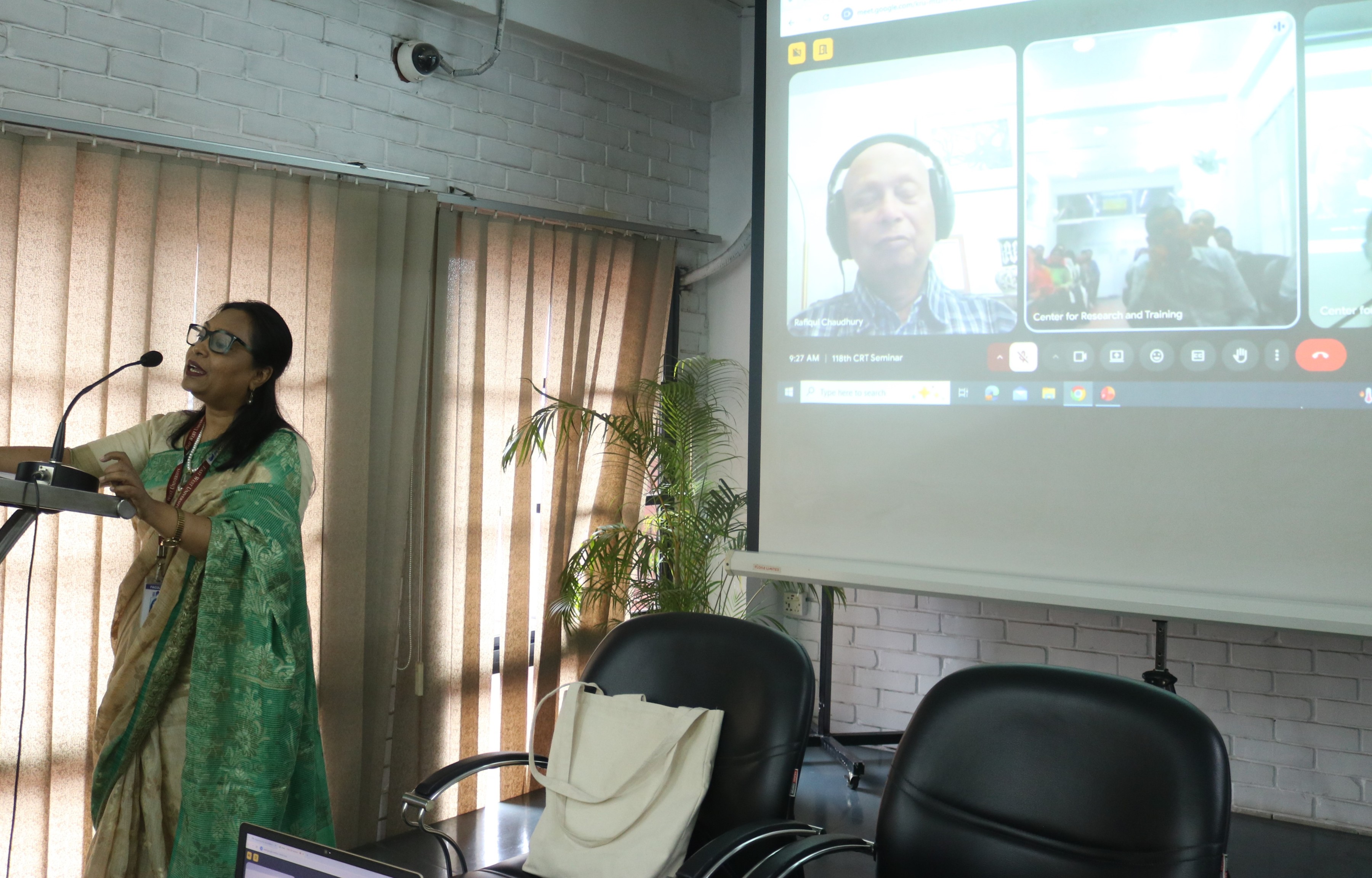 The event was chaired by Dr. Rafiqul Huda Chaudhury, Chairperson of EWUCRT, who concluded the session by emphasizing the profound importance and timely relevance of the research topic. Earlier in the seminar, Professor Dr. Sohel Rana, Executive Director of EWUCRT, delivered the welcome remarks, setting a scholarly tone for the discussion and highlighting EWUCRT's commitment to fostering impactful research. The seminar concluded with an engaging question-and-answer session, allowing attendees to interact with the presenters and discussants, fostering a dynamic exchange of ideas.